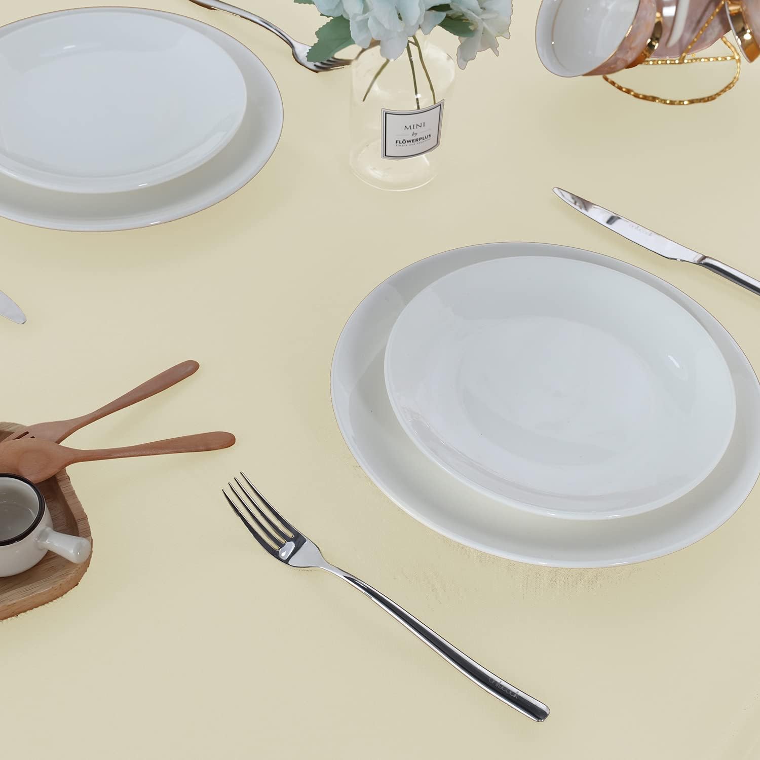 - HIGH QUALITY MATERIAL: Our tablecloth are crafted from high quality durable polyester fabric, perfect to protect and decorate your tables. The package will include 1 piece tablecloth measuring 60 W by 102 L inch Ivory tablecloth