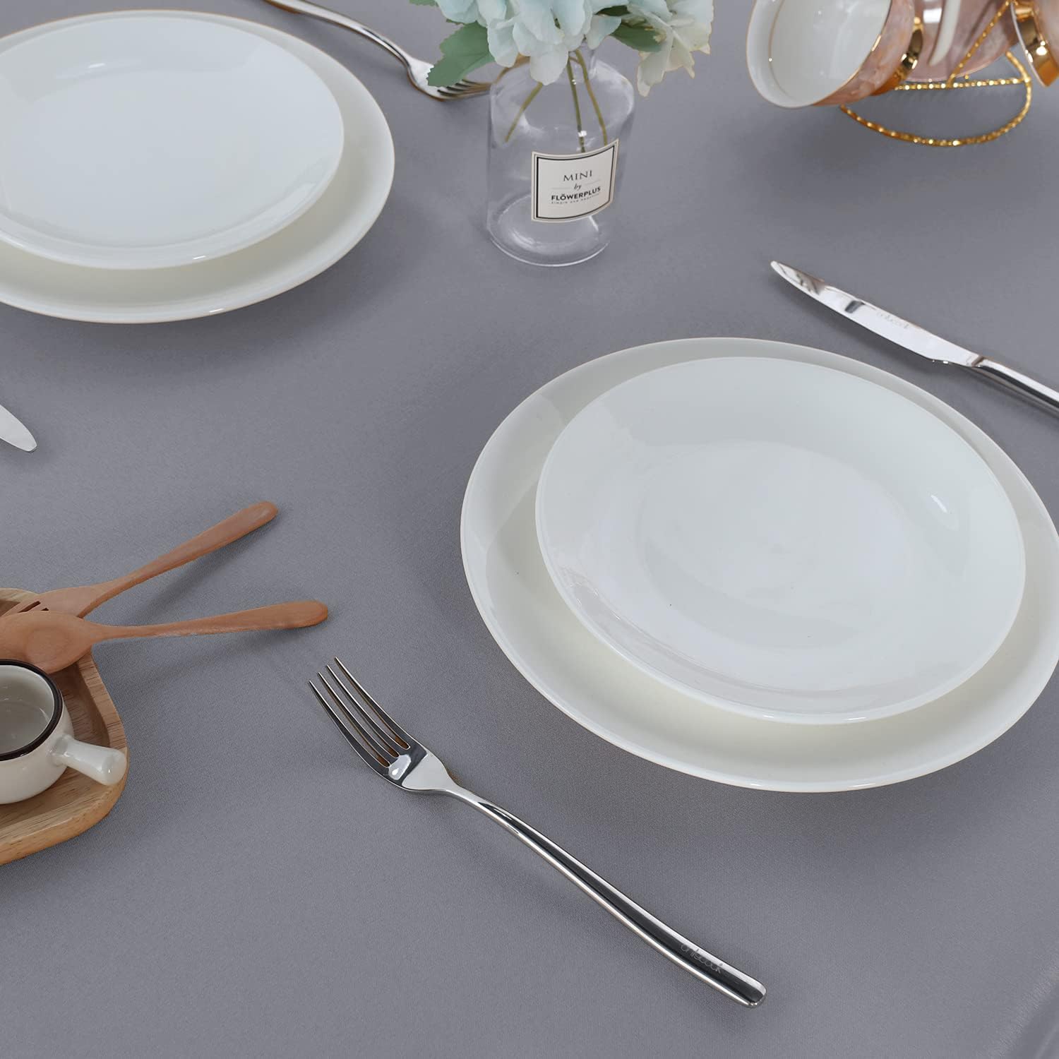 - HIGH QUALITY MATERIAL: Our tablecloth are crafted from high quality durable polyester fabric, perfect to protect and decorate your tables. The package will include 1 piece tablecloth measuring 54 W by 108 L inch Light Grey tablecloth
