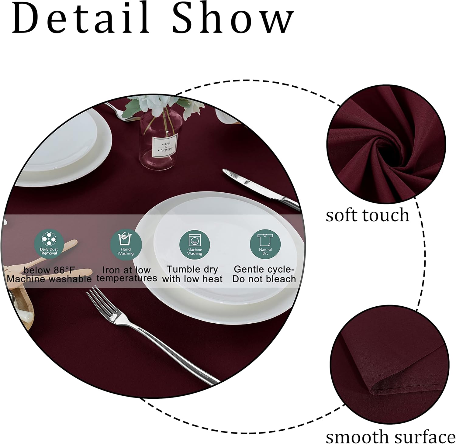 - HIGH QUALITY MATERIAL: Our tablecloth are crafted from high quality durable polyester fabric, perfect to protect and decorate your tables. The package will include 1 piece tablecloth measuring 54 W by 54 L inch Burgundy tablecloth