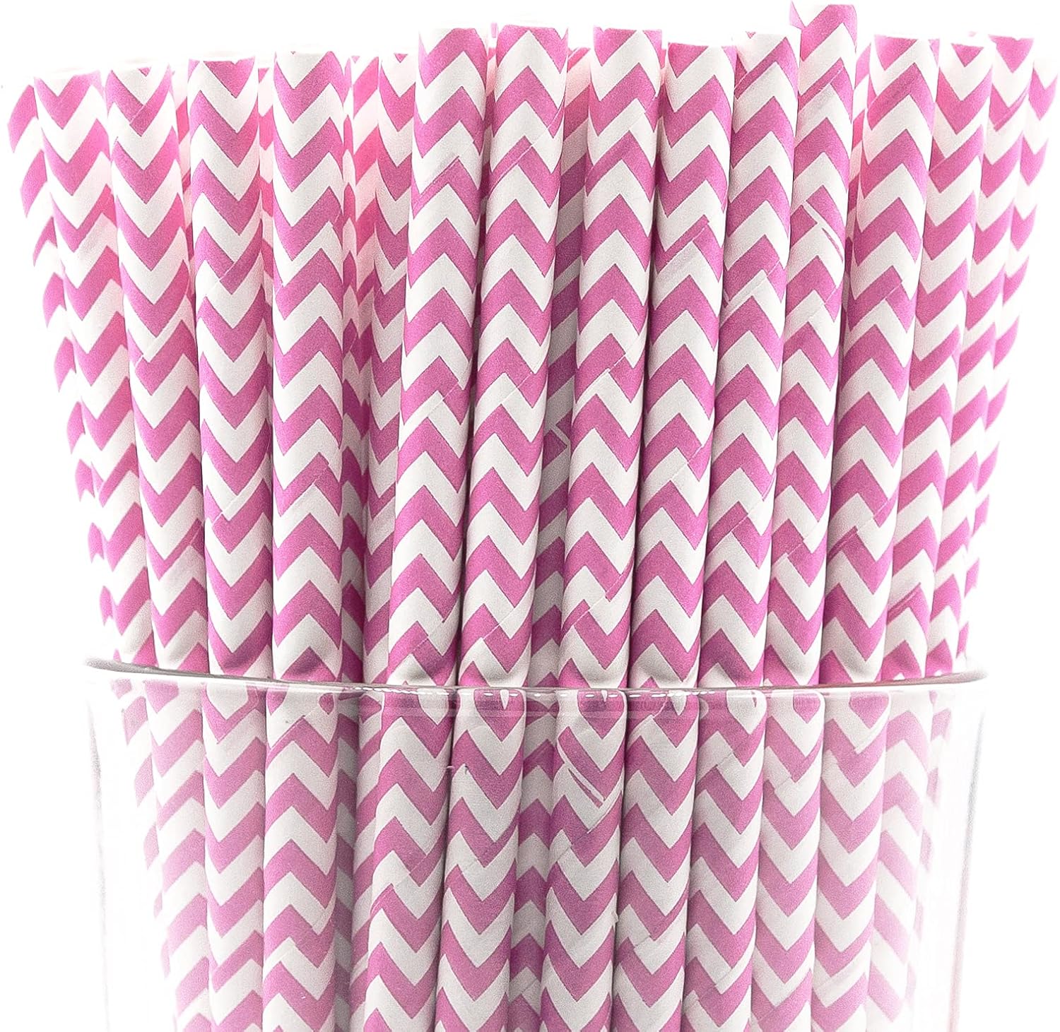 - Pack of 900 Pink Chevron wrapped paper straws that are 7.75” long and have a diameter of 0.25”. Made with 4-ply paper which translates into thicker and more resilient straws that won’t wilt or change shape in both hot and cold drinks.