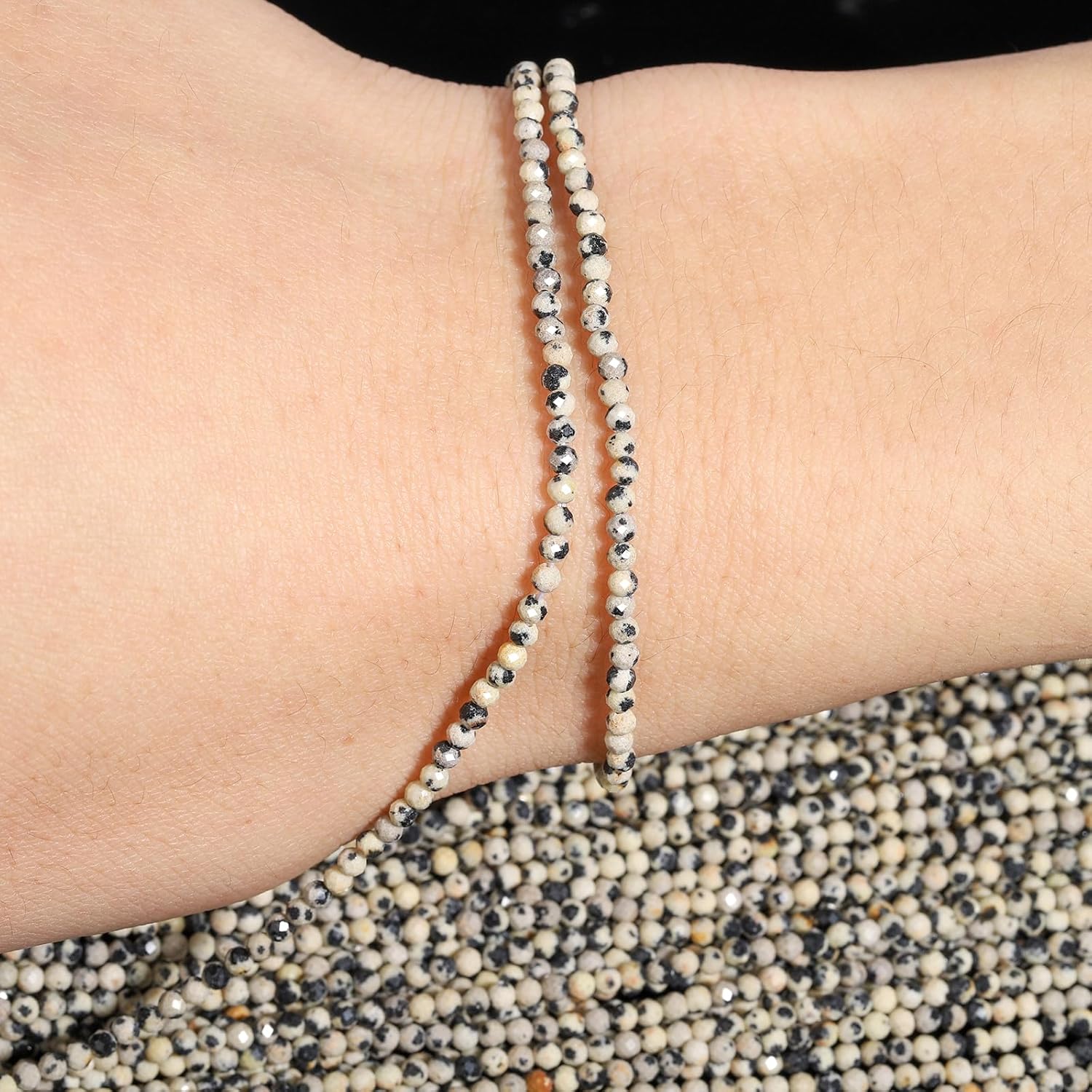 Song Xi 180pcs 2mm Natural Dalmatian Gemstone Beads Faceted Round Loose Stone Beads for Jewelry Making