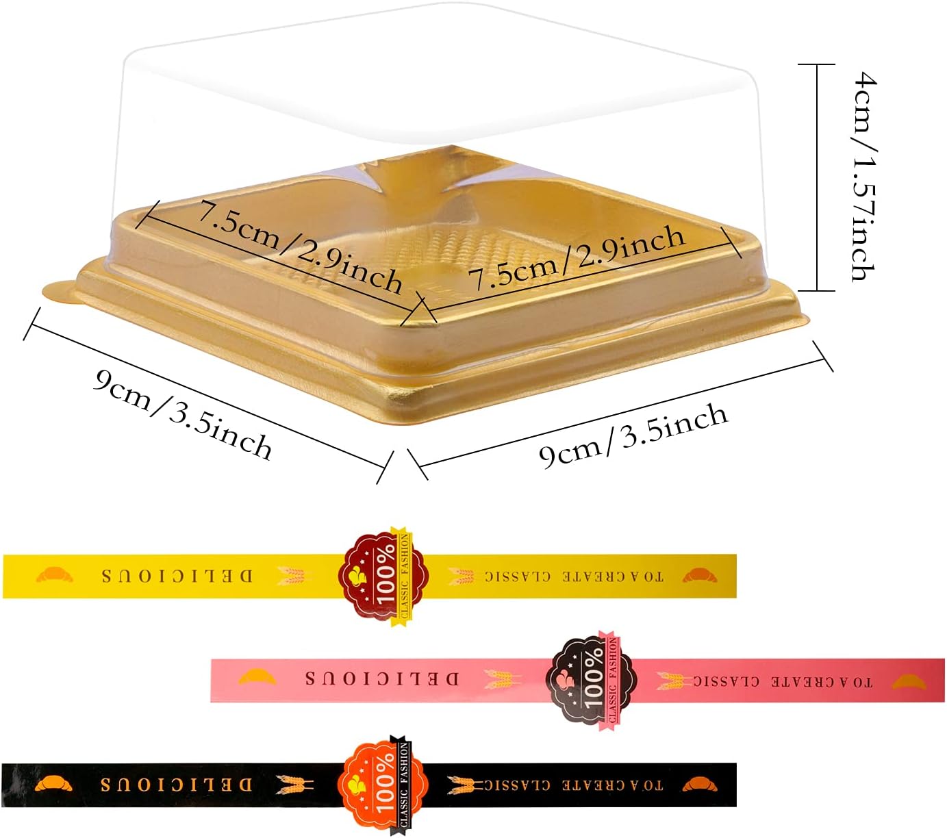 50 Pcs 3.5 Inch Mini Cake Box, Clear Plastic Cupcake Container for Muffins, Cookies, Mooncakes - Small Single Dessert Holder for Wedding, Birthday - Bonus 50 Pcs Gold Stickers
