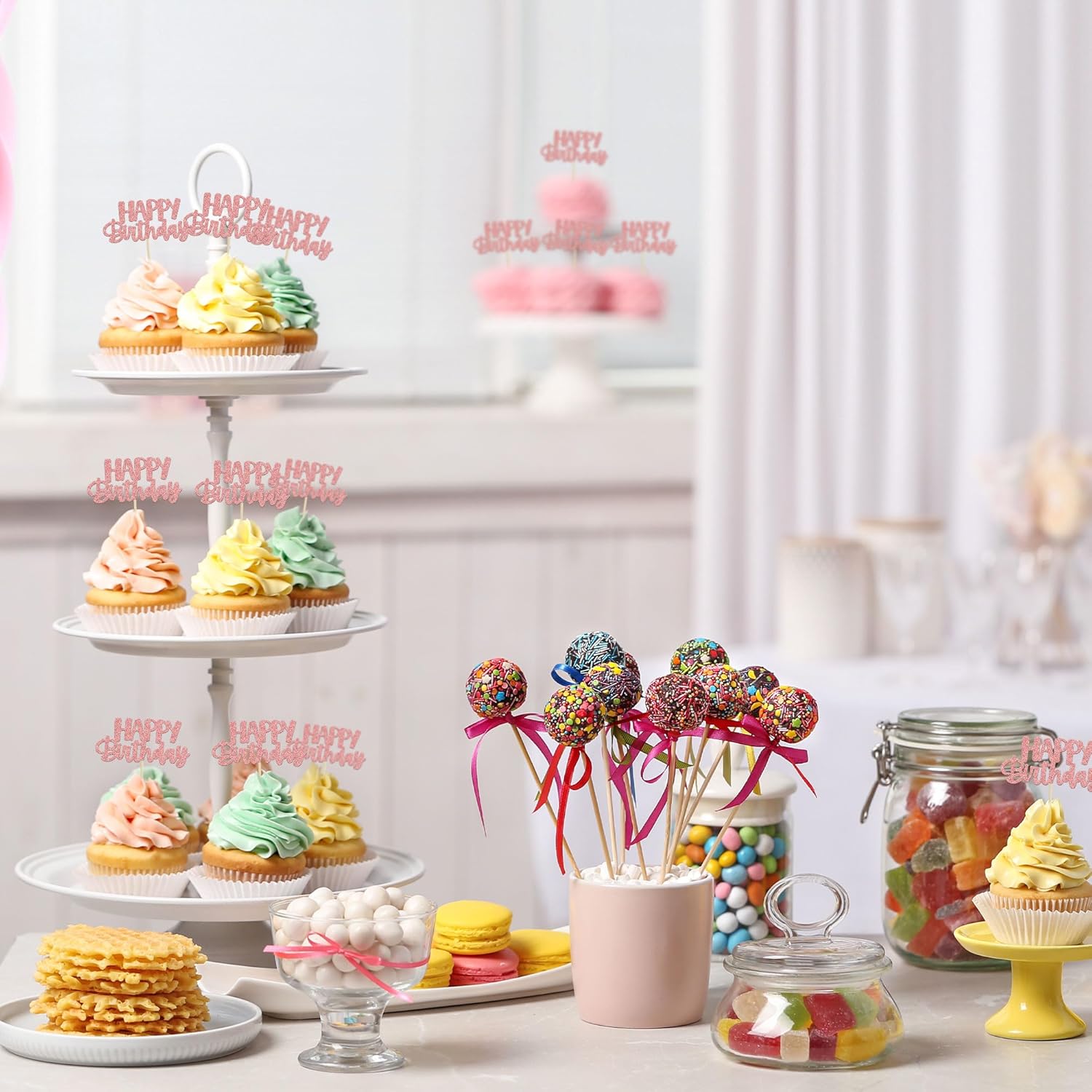 - 🌟 Premium Material: These glitter happy birthday cupcake Toppers are made of high quality paper and food-grade toothpick, very safe to put them on cakes, cupcakes, ice cream, fruits, pie, dessert, cheese or any dish and food appetizer you want to decorate.