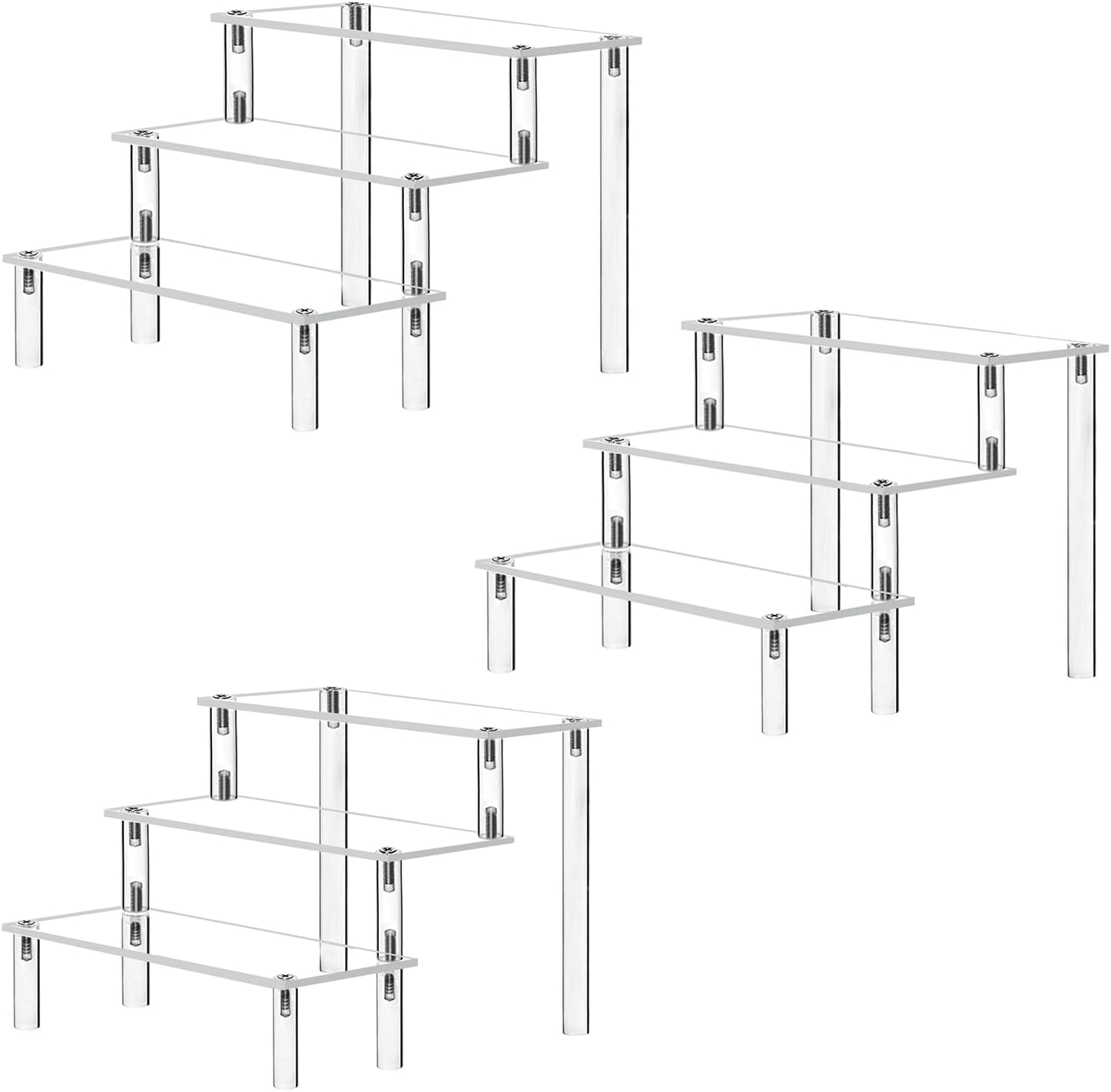 Acrylic Display Risers,Clear Acrylic Risers Display Stand Shelf 3 Tiered Cupcake Stand Perfect for Amiibo Funko Pop Figure Desserts Stand Tabletop Perfume Colognes Toys Collections Cosmetic