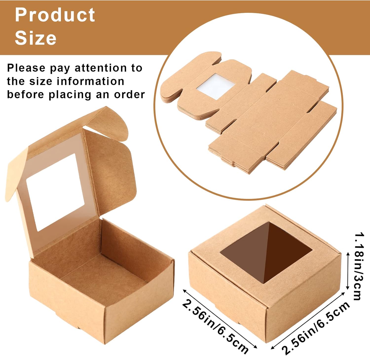 Zonon 30 Pcs Soap Boxes for Homemade Packaging, Mini Kraft Treat Boxes with Window for Bakery Candy Soap Making Gift Packaging(2.56 x 2.56 x 1.18 Inch,Brown)