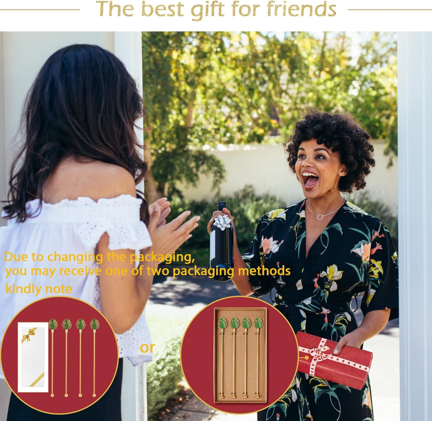 Palm leaf Drink Stirrer Sticks Stainless Steel Coffee Beverage Stirrers,Set of 4 Cocktail Swizzle Stick,7.5", Multicolor