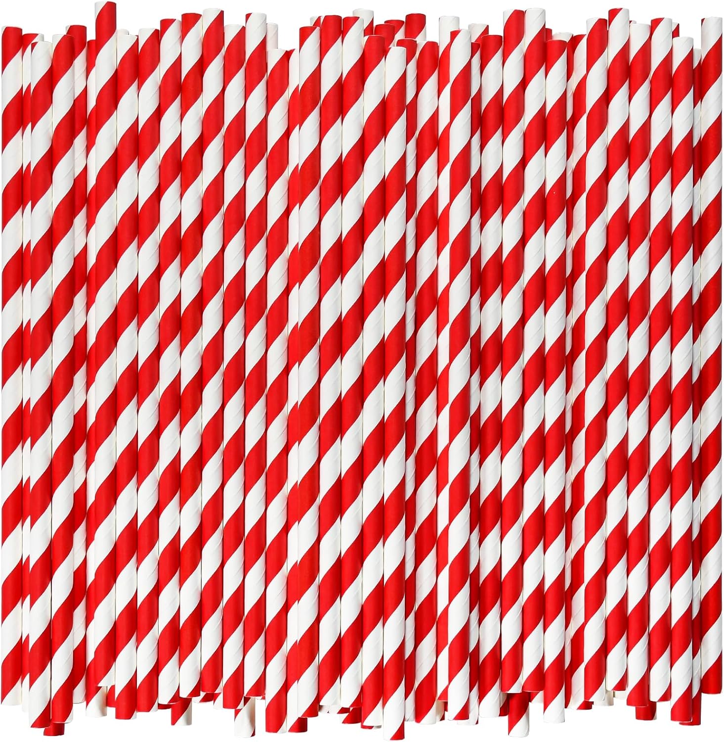 Disposable Paper Drinking Straws, Red Striped, 7.75" x0.24", 1000 Counts - Restaurant Pack