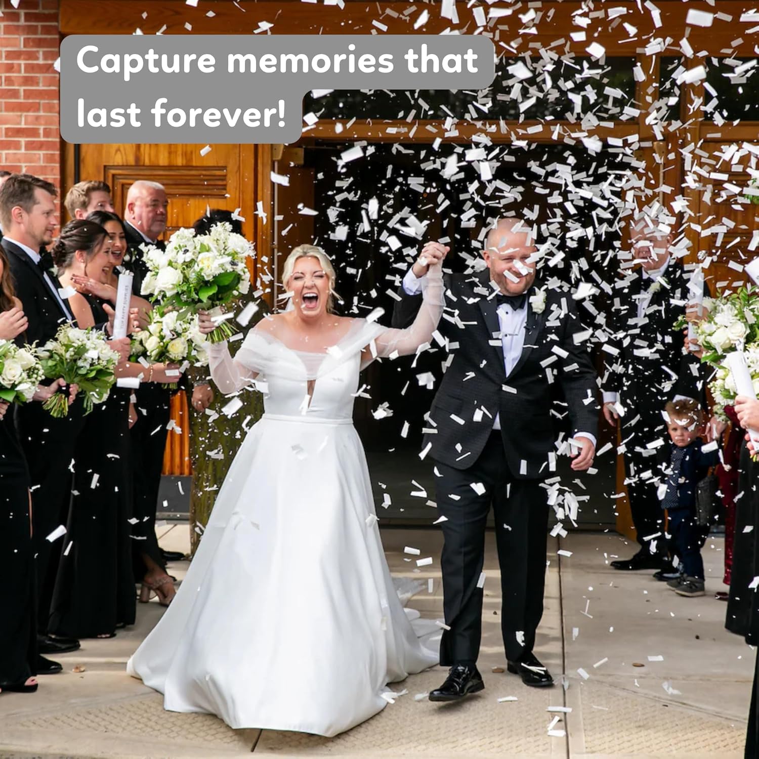 - MAKE THIS MOMENT SPECIAL - These premium confetti poppers pack a punch. Pop these at your wedding to create amazing memories and tons of fun. Make one of life’s most important moments exciting, memorable, and especially eye catching. After all, elegant white confetti just screams EXCITING!