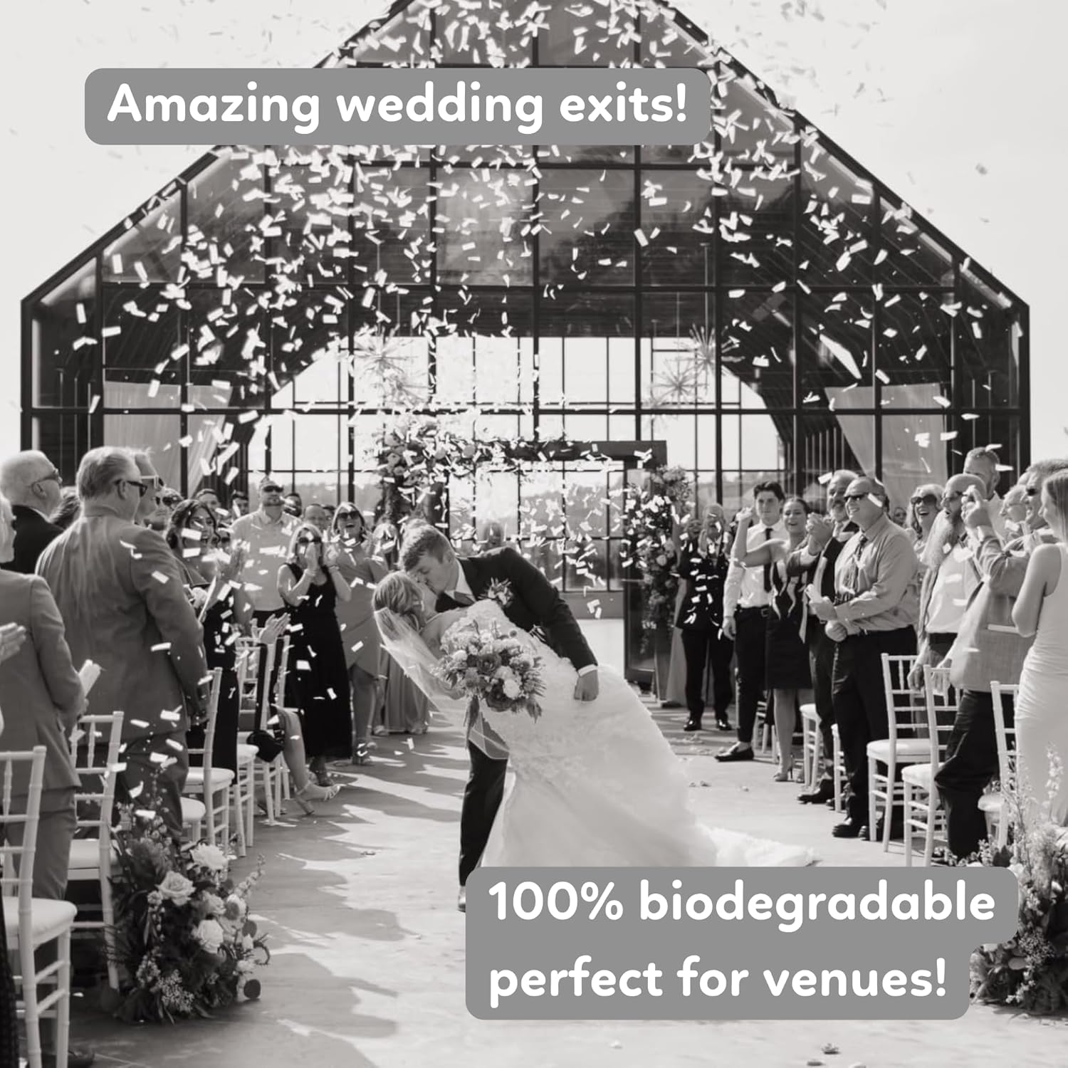 - BIODEGRADABLE - These wedding confetti cannons are biodegradable which means... No mess no stress! Plan a delightful outdoor wedding with these poppers without the hassle of worrying about cleaning up!