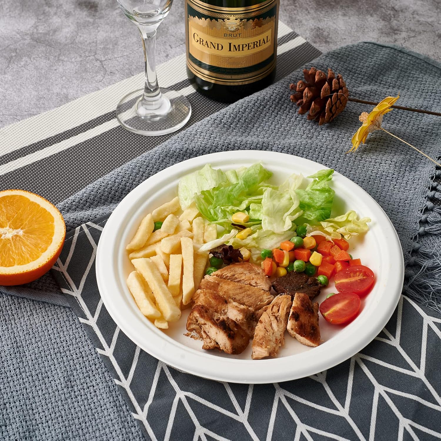 - Natural Material: Compostable paper plates are made from sugar cane fibers, the material is 100% sustainable and renewable. They can be composted directly, it only takes 3-6 months