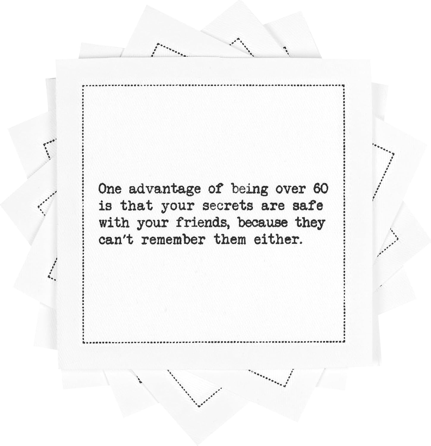 Five Star Napkins 60th Birthday Quotes White Cotton Cocktail Napkins, Beverage Napkins, Bar Napkins, Cloth Napkins, Party Napkins, Events, Holidays, Weddings, Birthdays, Disposable, 4.5" x 4.5"- (50x)