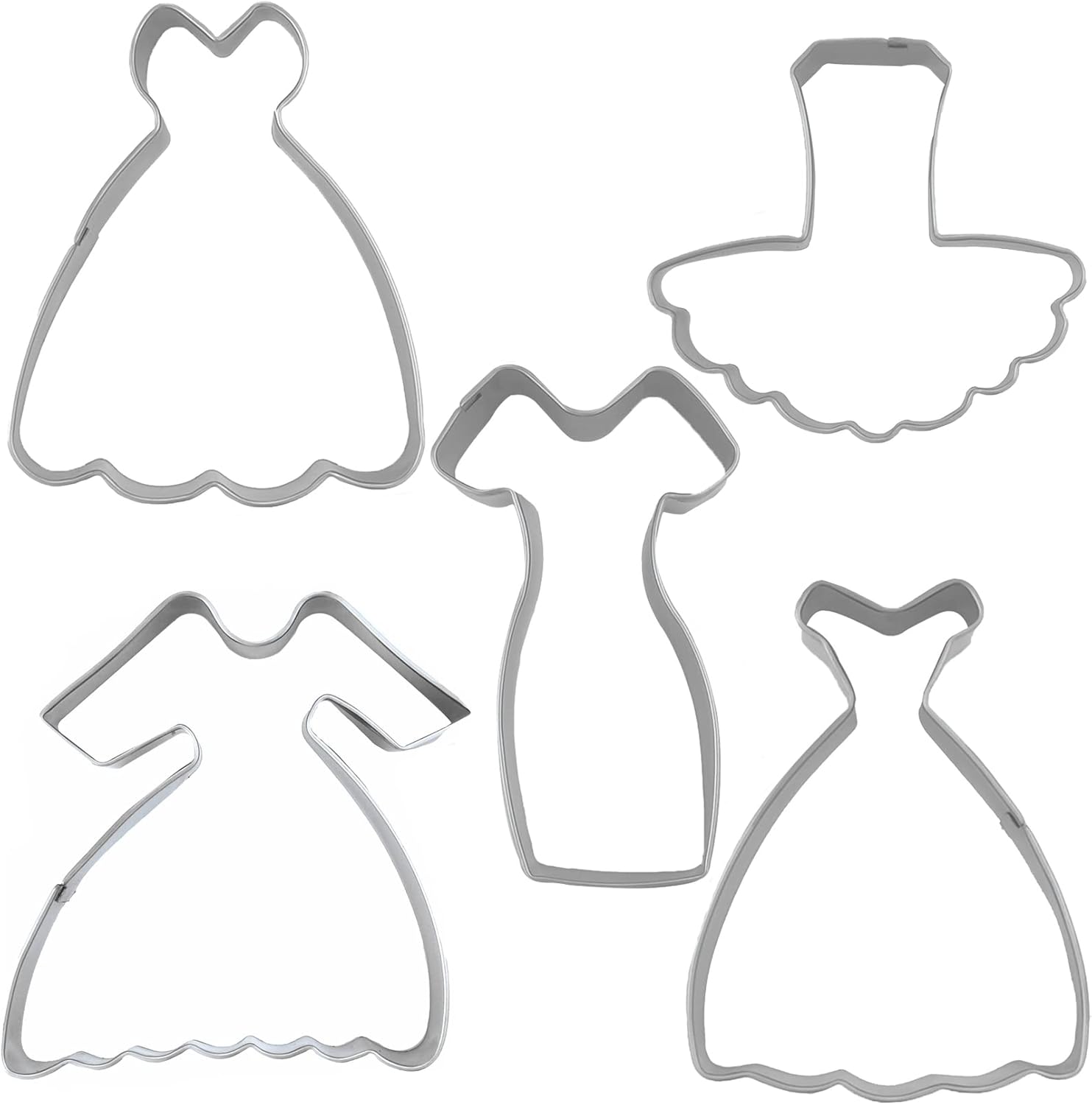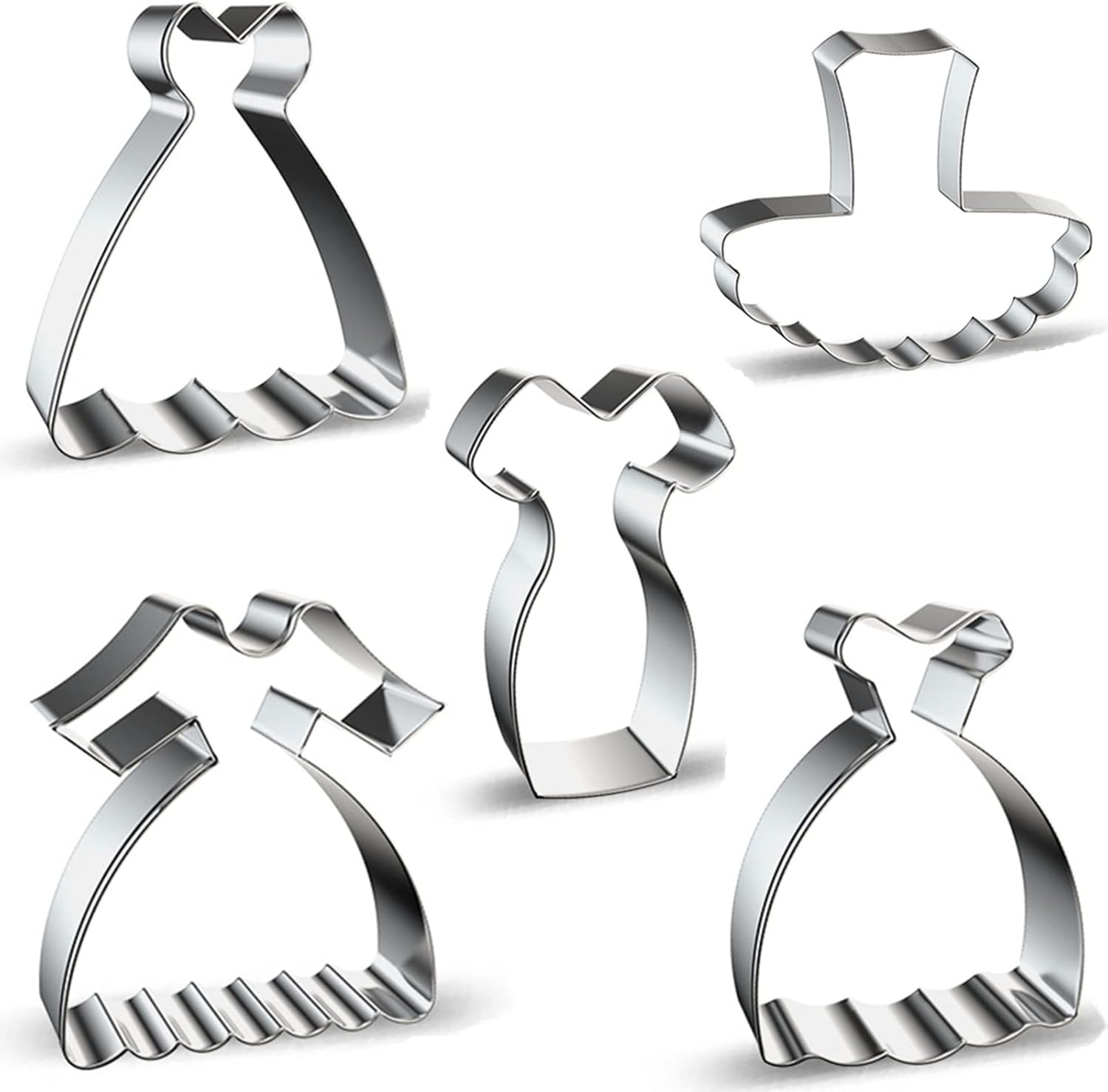 Dress Shaped Cookie Cutters Set of 5 pcs, Stainless Steel Wedding Princess Dress Fondant Cutter Molds Baking DIY