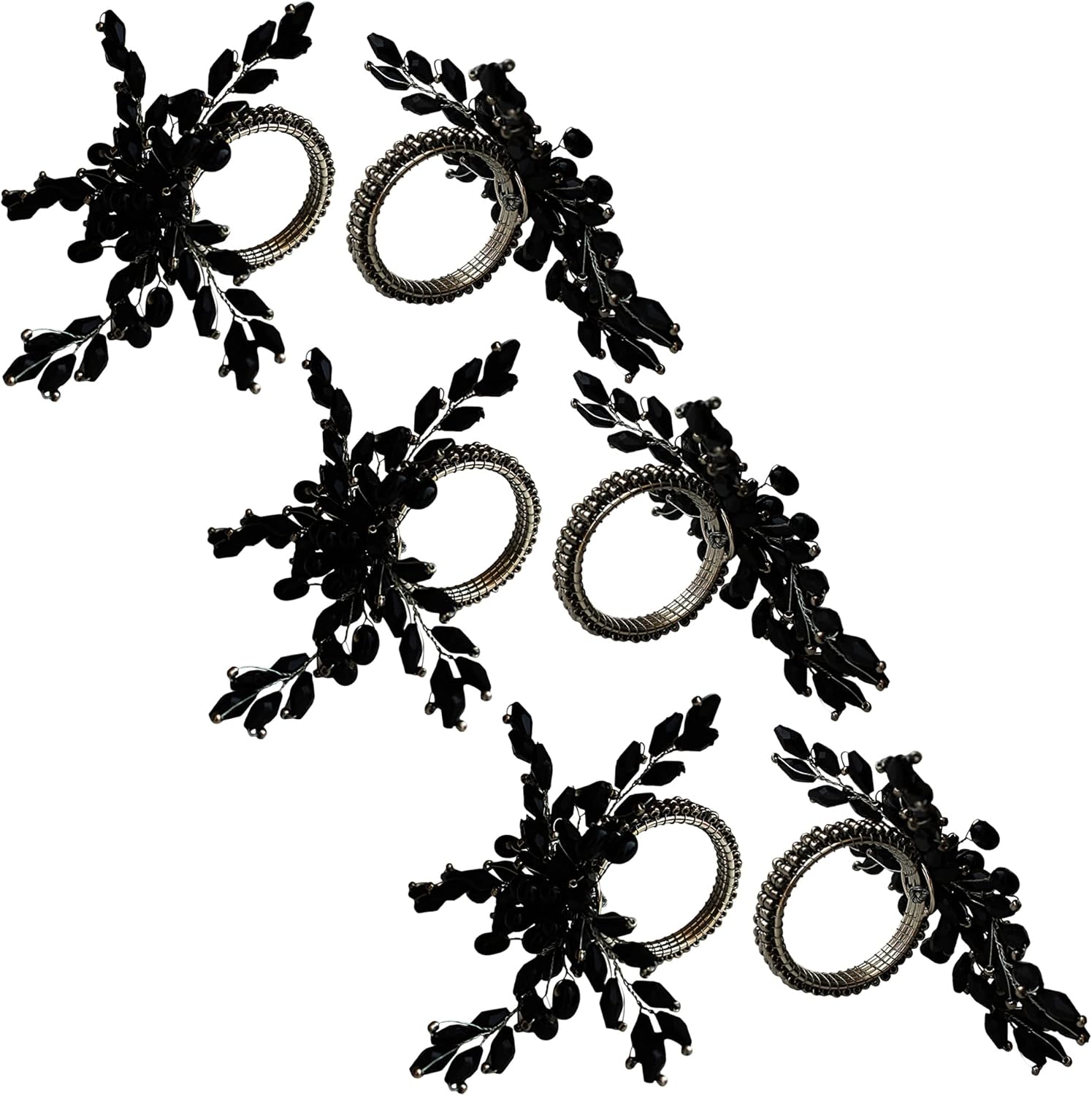 Napkin Rings Set of 12 for Dining Table Decoration Parties Everyday Metal Napkin Holder Leaf Black (Pack of 12)