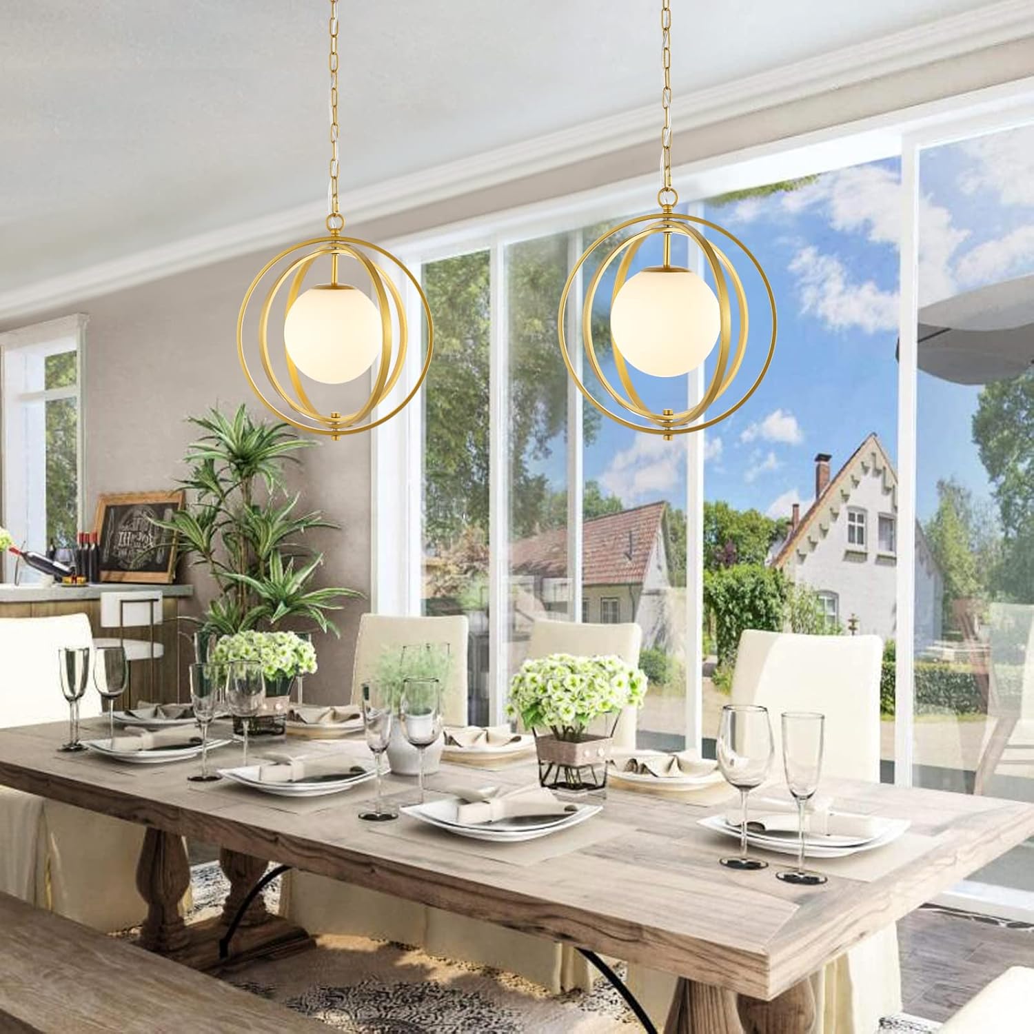 - Perfect Size & Wide Application: Width*Height=14”*16”.Metal spheres diameter:14”, Glass Shade diameter:7.09”, Base Diameter 4.72”. Gold finished chandelier is hard wired light fixture, It's the perfect light fixture for Kitchen, Dining Room, Living Room, Foyer, Bedroom, Corridors and any room you like.