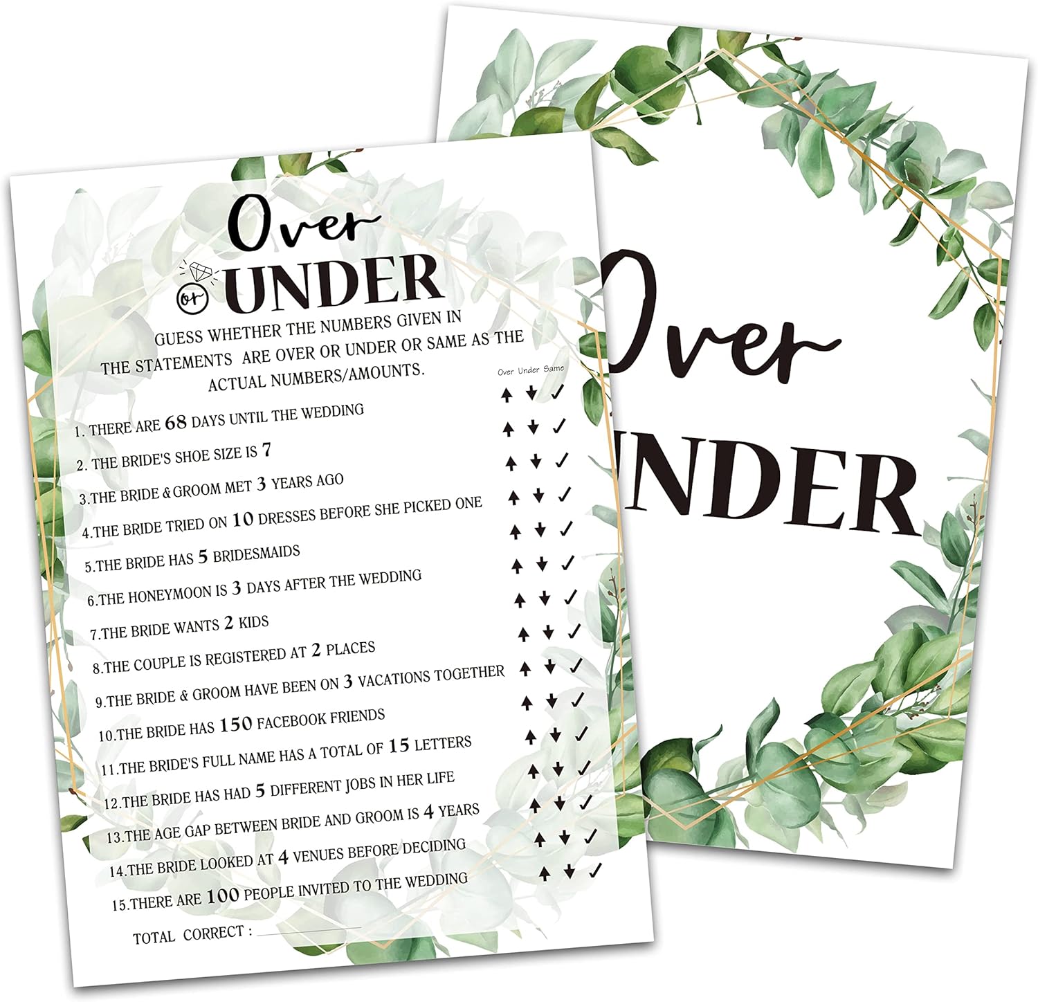Bridal Shower Game - Over or Under, Tropical Jungle Theme Engagement Party Set of 30 Cards (Leaf009)