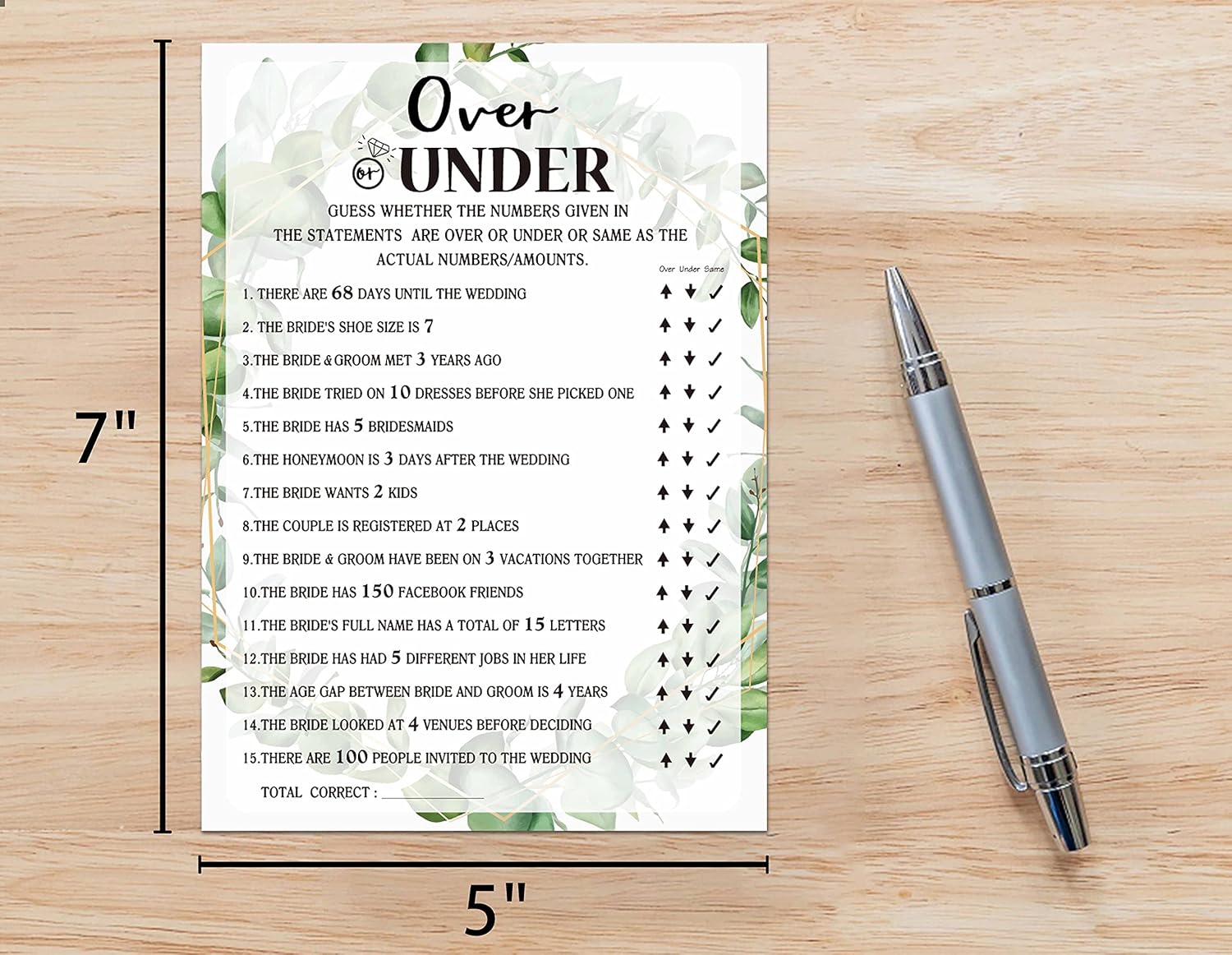 - Size: Our game cards measure 5" x 7" to ensure enough space for your guests to write. 30 cards per set.