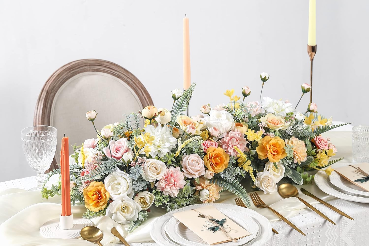 Serra Flora Artificial Wedding Flowers Bouquets Centerpieces Faux Flowers Combo for Fake Flowers with Leaves DIY Floral Arrangements Bridal Baby Shower Home Decor