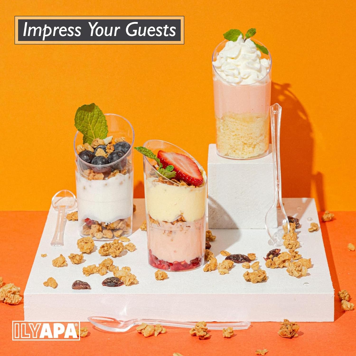- Satisfaction Guaranteed - ILYAPA stands behind all of its products 100%. We use strong durable packaging to guarantee that your mini plastic dessert cups arrive in the best condition possible.