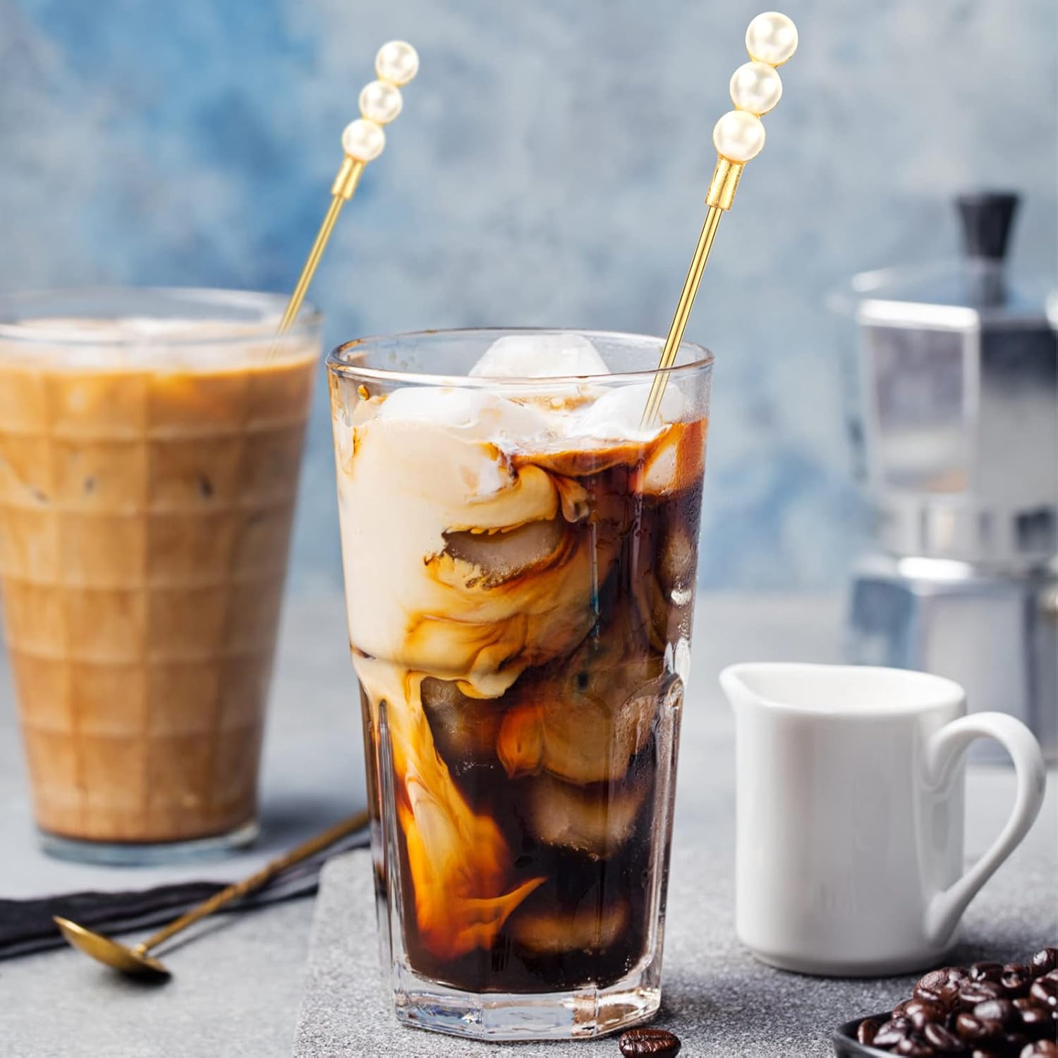 - Exquisite Pearl design: these gold and white coffee beverage stirrers feature white Pearl shapes design on the top, chic and bright while making it easier to hold, allow you to mix more quickly and evenly, save time and energy