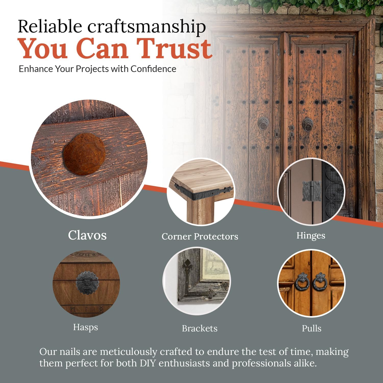 - PREMIUM FABRICATION: Each iron nail is meticulously MIG welded by hand to ensure maximum strength and longevity. Unlike competitors who use less durable spot welding, our nails are built to withstand the elements, making them ideal for exterior shutters, faux wood beams, and other applications requiring robust and reliable decorative hardware.