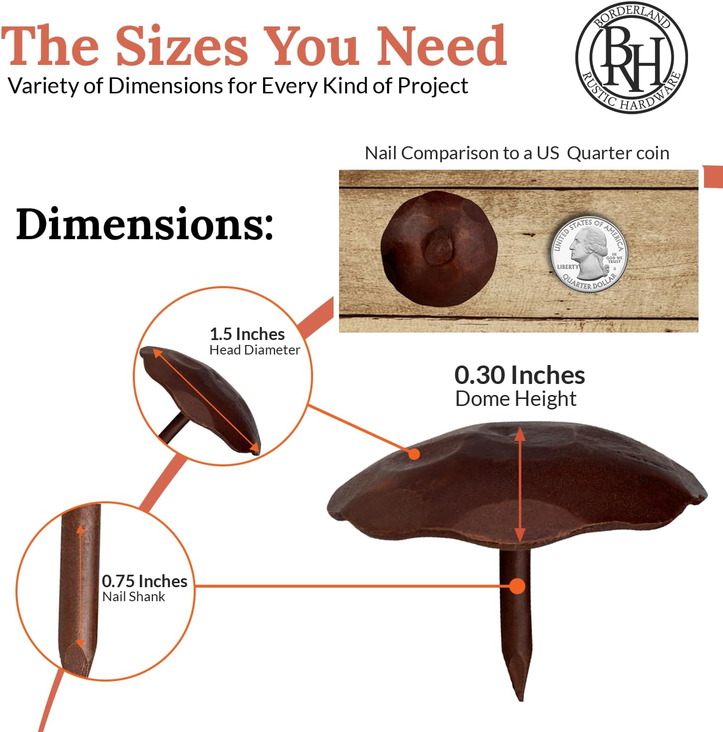 50 Pack 1.5" Round Head Iron Clavos Decorative Nails – Sealed Rusted – Handmade Rustic Round Fasteners for Farmhouse Shutters, Faux Wood Beams, Barn Doors, Shutters, Gates – Ornamental Wood Accent