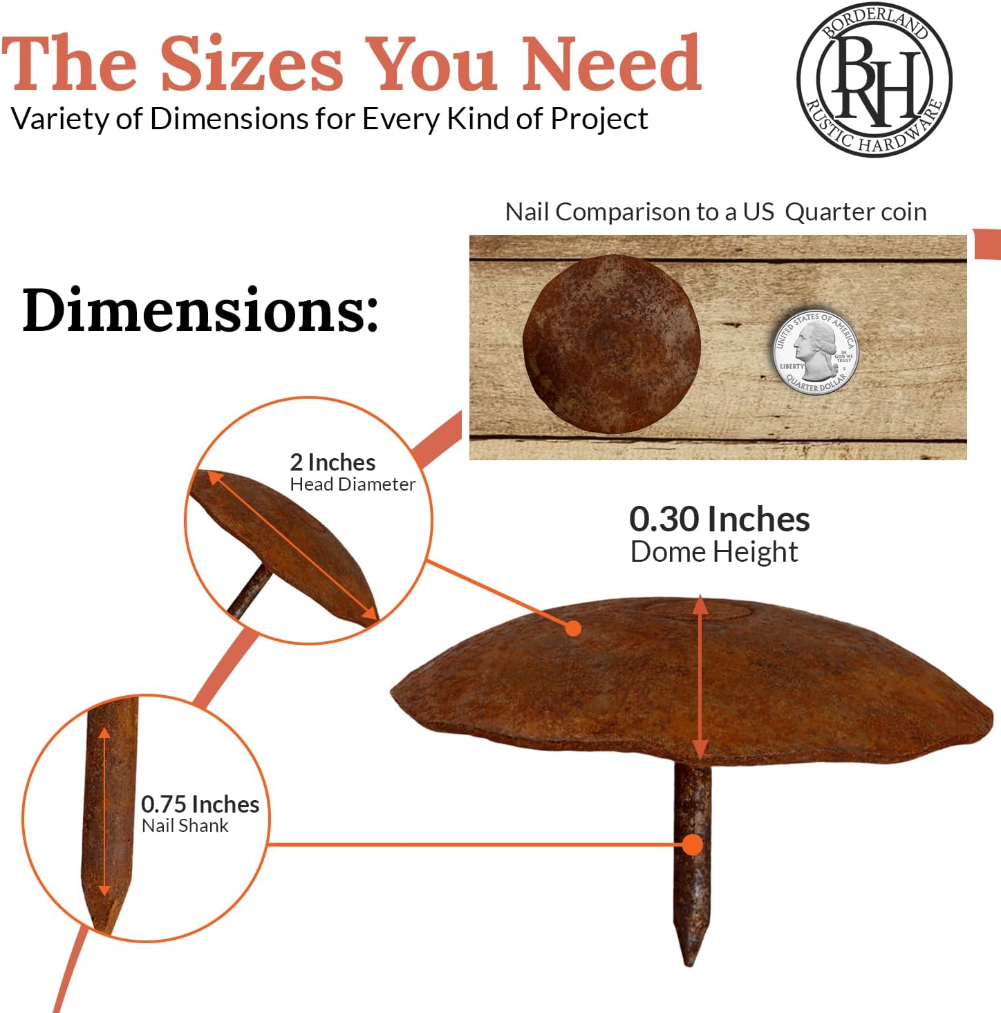 50 Pack 2" Round Head Iron Clavos Decorative Nails – Rusted – Handmade Rustic Round Fasteners for Farmhouse Shutters, Faux Wood Beams, Barn Doors, Shutters, Gates – Ornamental Wood Accent
