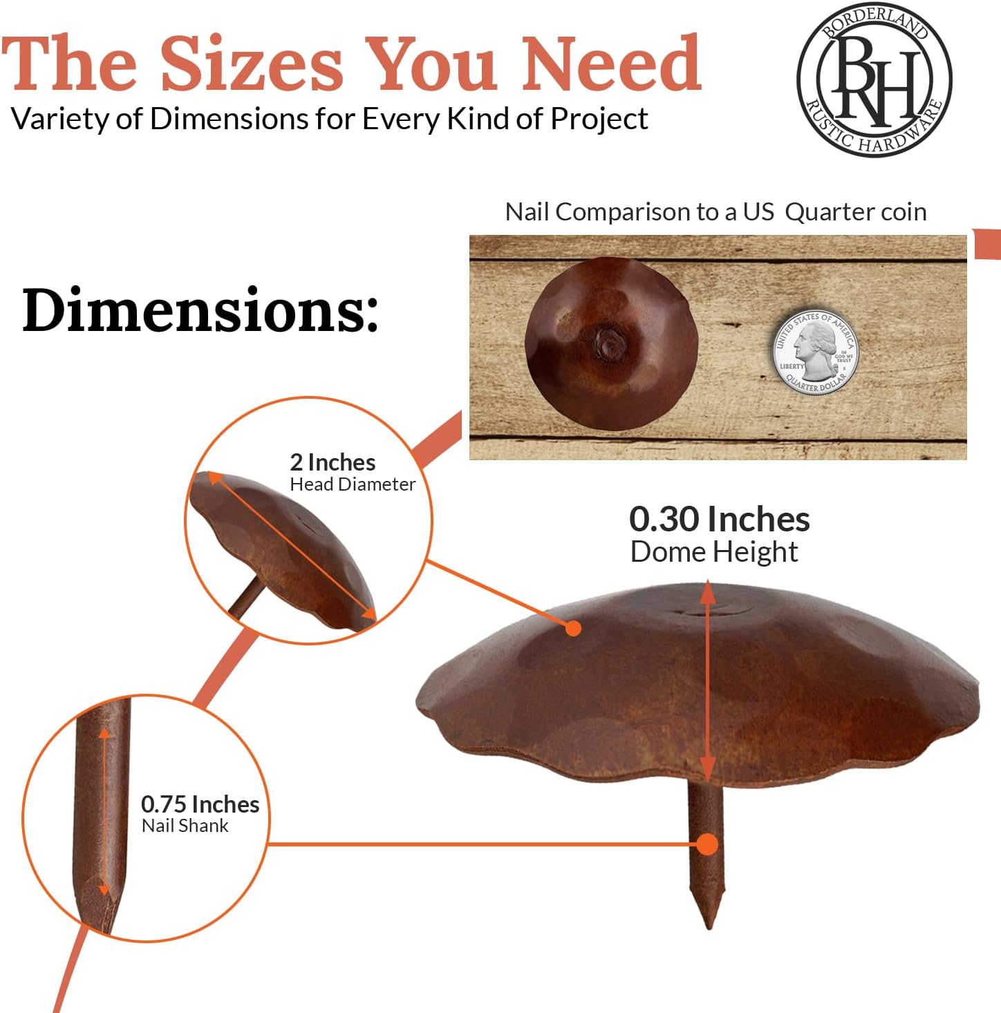 50 Pack 2" Round Head Iron Clavos Decorative Nails – Sealed Rusted – Handmade Rustic Round Fasteners for Farmhouse Shutters, Faux Wood Beams, Barn Doors, Shutters, Gates – Ornamental Wood Accent
