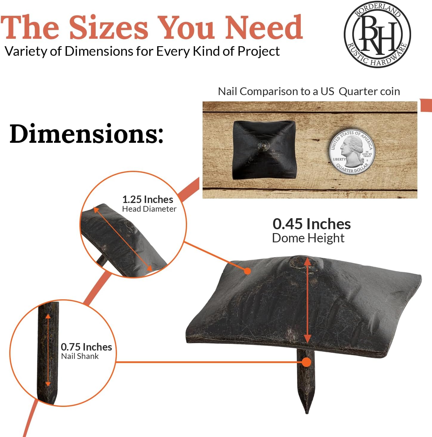 50 Pack 1.25" Square Head Iron Clavos Decorative Nails – Sealed Unfinished – Handmade Rustic Square Fasteners for Farmhouse Shutters, Barn Doors, Shutters, Gates – Ornamental Wood Accent