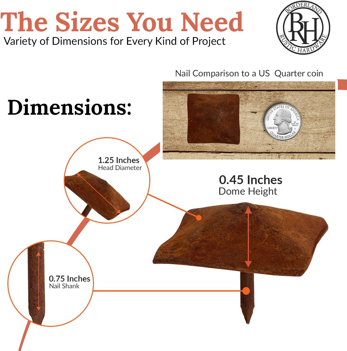 100 Pack 1.25" Square Head Iron Clavos Decorative Nails – Rusted – Handmade Rustic Square Fasteners for Farmhouse Shutters, Faux Wood, Barn Doors, Shutters, and Gates – Ornamental Wood Accent