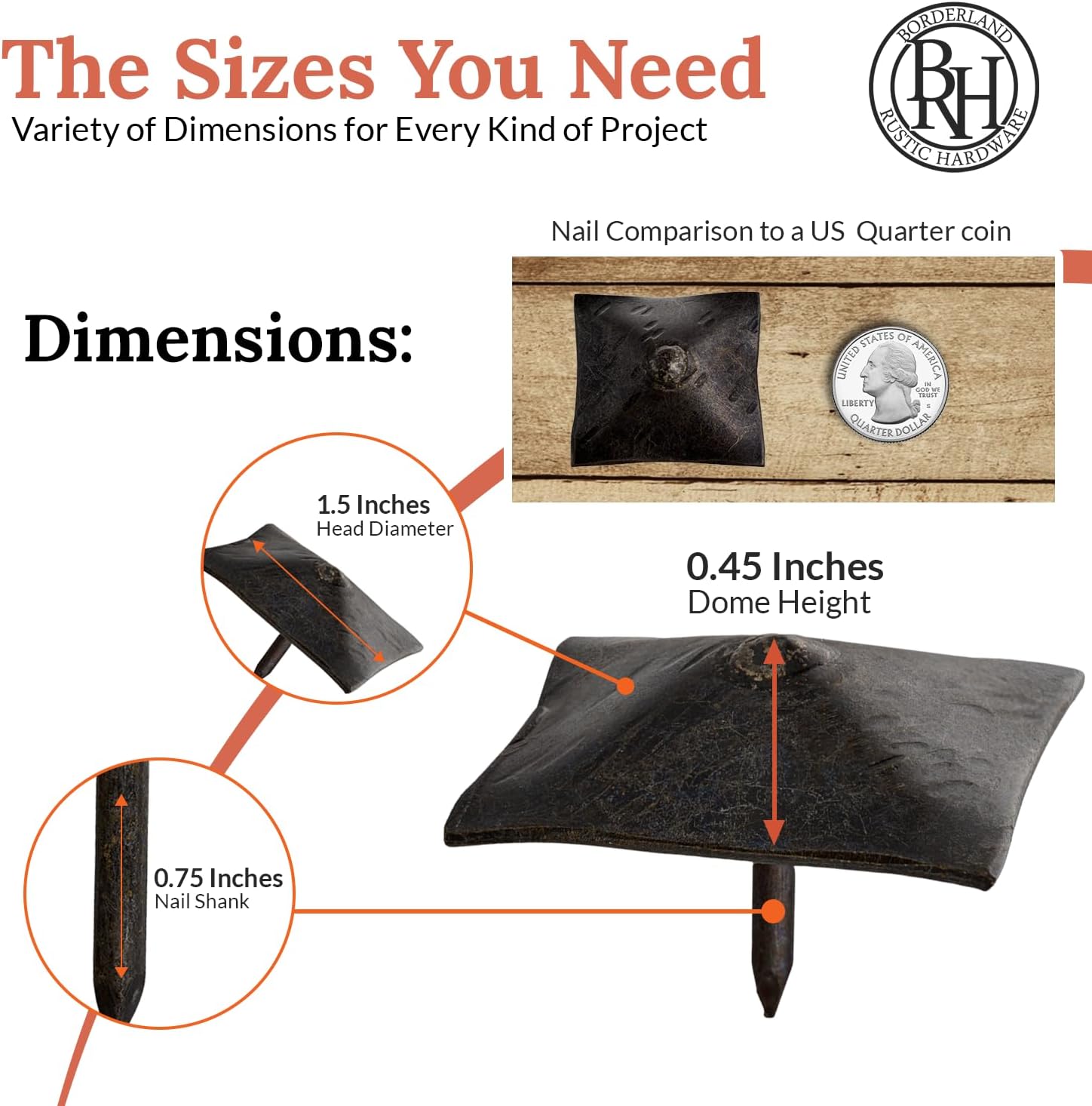 10 Pack 1.5" Square Head Iron Clavos Decorative Nails – Sealed Unfinished – Handmade Rustic Square Fasteners for Farmhouse Shutters, Faux Wood, Barn Doors, Shutters, Gates – Ornamental Wood Accent