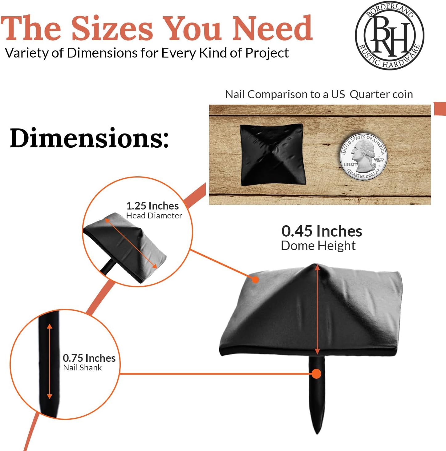 50 Pack 1.25" Square Head Iron Clavos Decorative Nails – Black – Handmade Rustic Square Fasteners for Farmhouse Shutters, Faux Wood Beams, Barn Doors, Shutters, and Gates – Ornamental Wood Accent