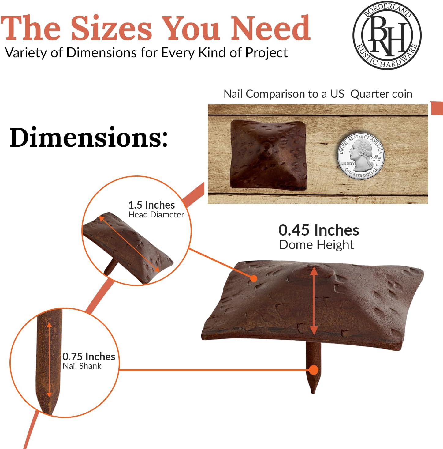100 Pack 1.5" Square Head Iron Clavos Decorative Nails – Sealed Rusted – Handmade Rustic Square Fasteners for Farmhouse Shutters, Barn Doors, Shutters, and Gates – Ornamental Wood Accent