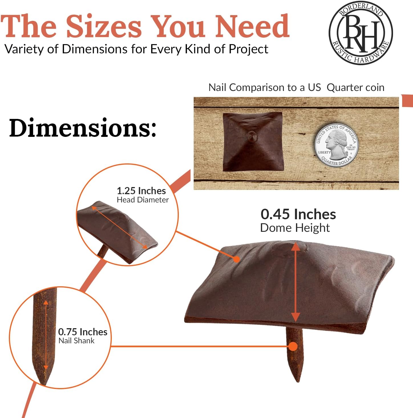 100 Pack 1.25" Square Head Iron Clavos Decorative Nails – Sealed Rusted – Handmade Rustic Square Fasteners for Farmhouse Shutters, Barn Doors, Shutters, and Gates – Ornamental Wood Accent