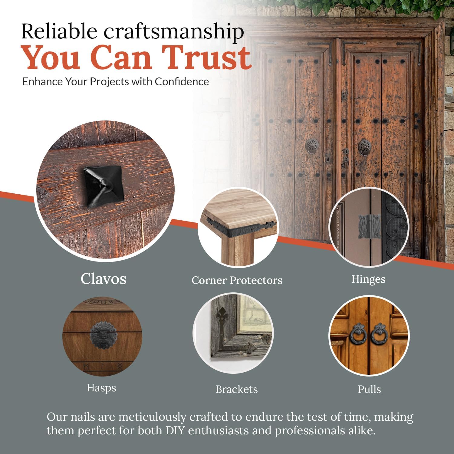 - IDEAL USES: These decorative hardware nails are perfect for a variety of applications, including barn door window shutters, exterior shutters, and faux wood beams. Ideal for upgrading wooden barn doors and farmhouse barn door hardware, they provide both functional and aesthetic enhancements to rustic and traditional projects.
