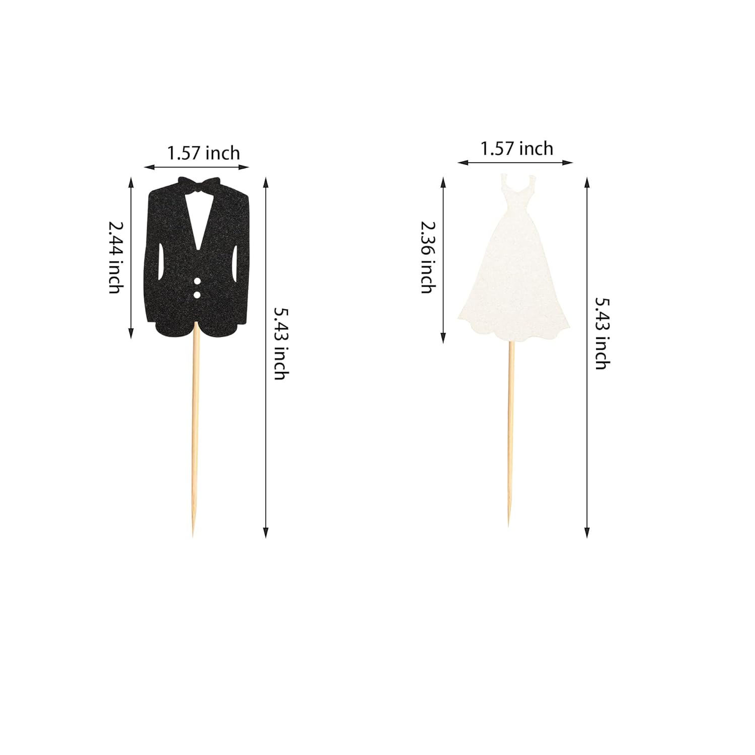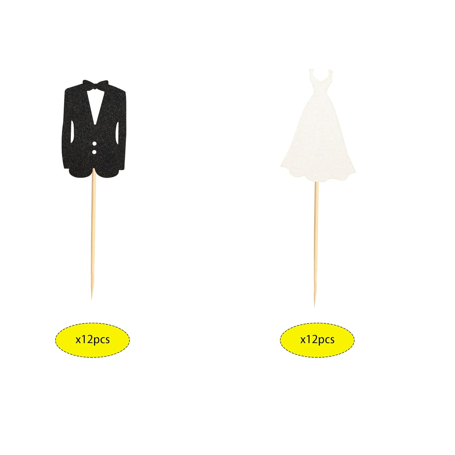 24pcs Bride and Groom Cupcake Toppers Wedding Dress and Tux Cupcake Picks Bridal Shower Wedding Engagement Anniversary Party Cake Decorations Supplies
