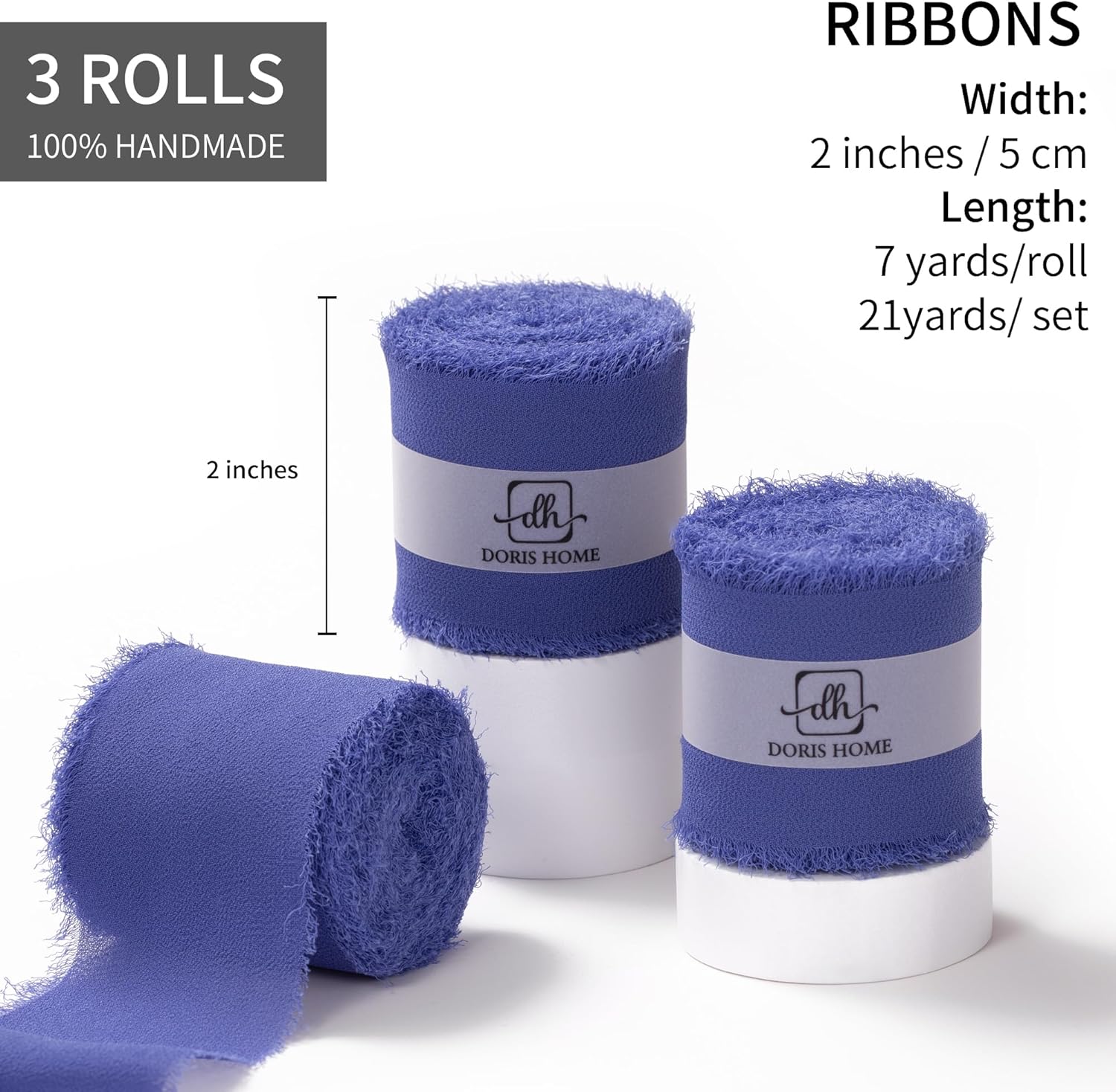 - 【Size and Color】Each roll of chiffon ribbon is 2 inches wide and 7 yards long, perfect for various creative uses such as making bows, decorating wreaths, and DIY crafts. This set includes 3 rolls electric blue ribbons. These vibrant frayed ribbons add a rustic charm to your creations, ideal for bouquet wrap or gift ribbon.