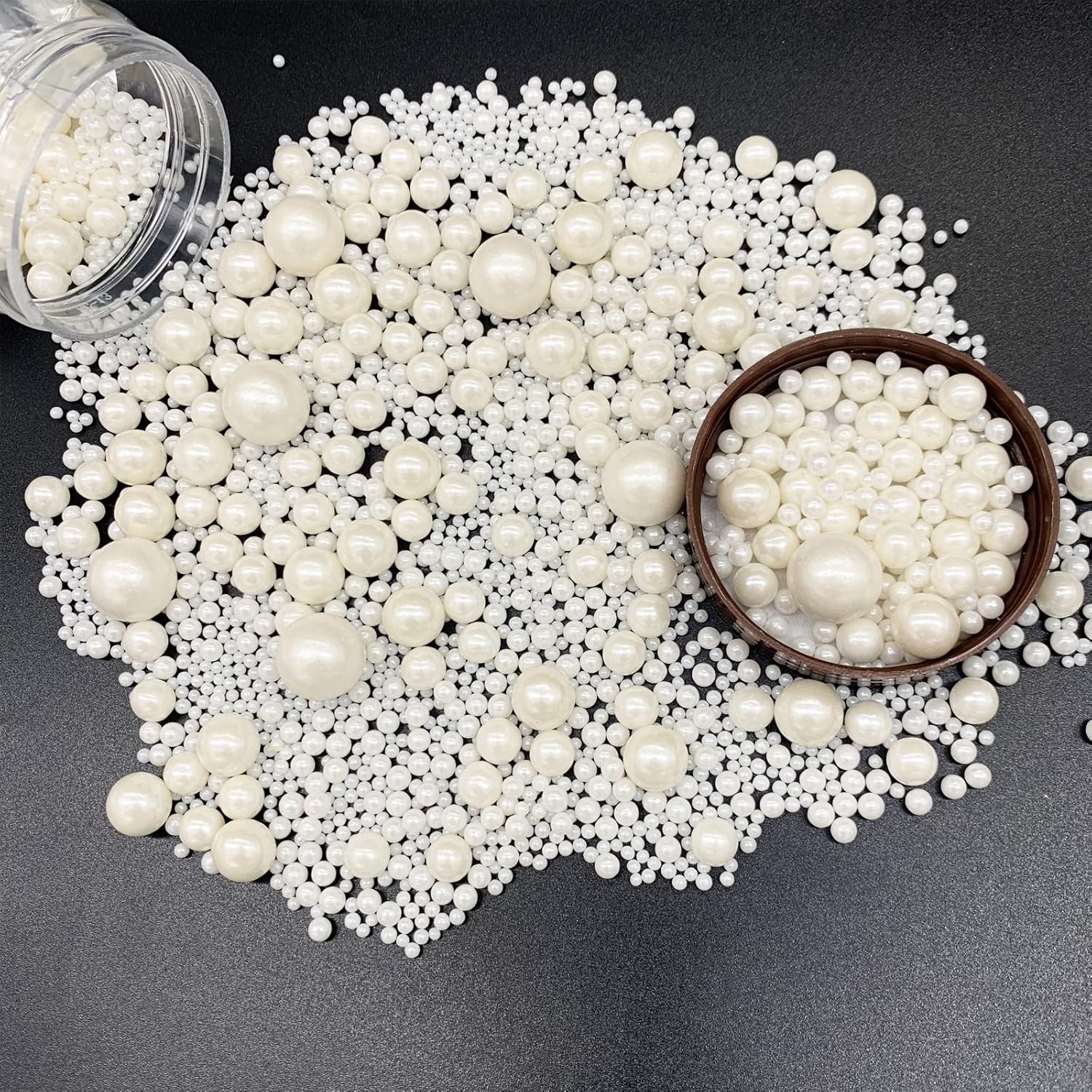 Weraru Edible White Pearl Sugar Sprinkles Candy Mixing Size Baking Edible Cake Decorations Cupcake Toppers Cookie Decorating Celebrations Wedding Shower Party Chirstmas Supplies 130g/ 4.58oz