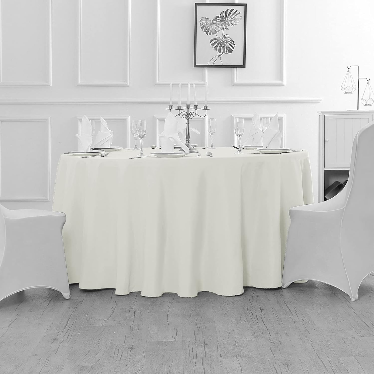 Fokitut 2 Pack Waterproof Round Tablecloth, 132 Inch, Stain Resistant and Wrinkle Polyester Table Cloth, Fabric Table Cover for Kitchen Dining, Wedding, Party, Holiday Dinner-Ivory