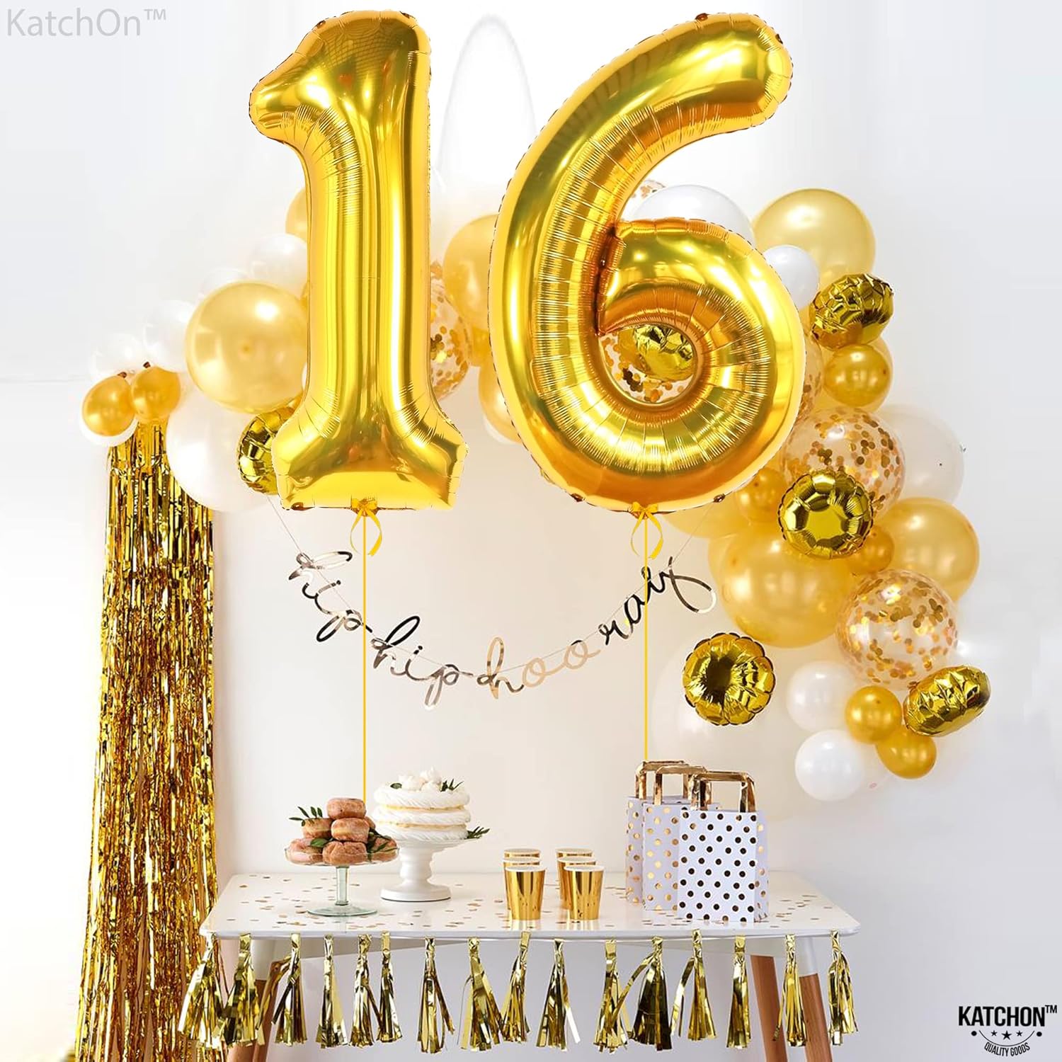 KatchOn, Giant Gold 16 Balloon Numbers - 40 Inch | Gold Number 16 Balloons for Sweet 16 Birthday Decorations | Gold Sweet 16 Balloons | Sweet 16 Balloons for Sweet 16 Party Decorations for Boys