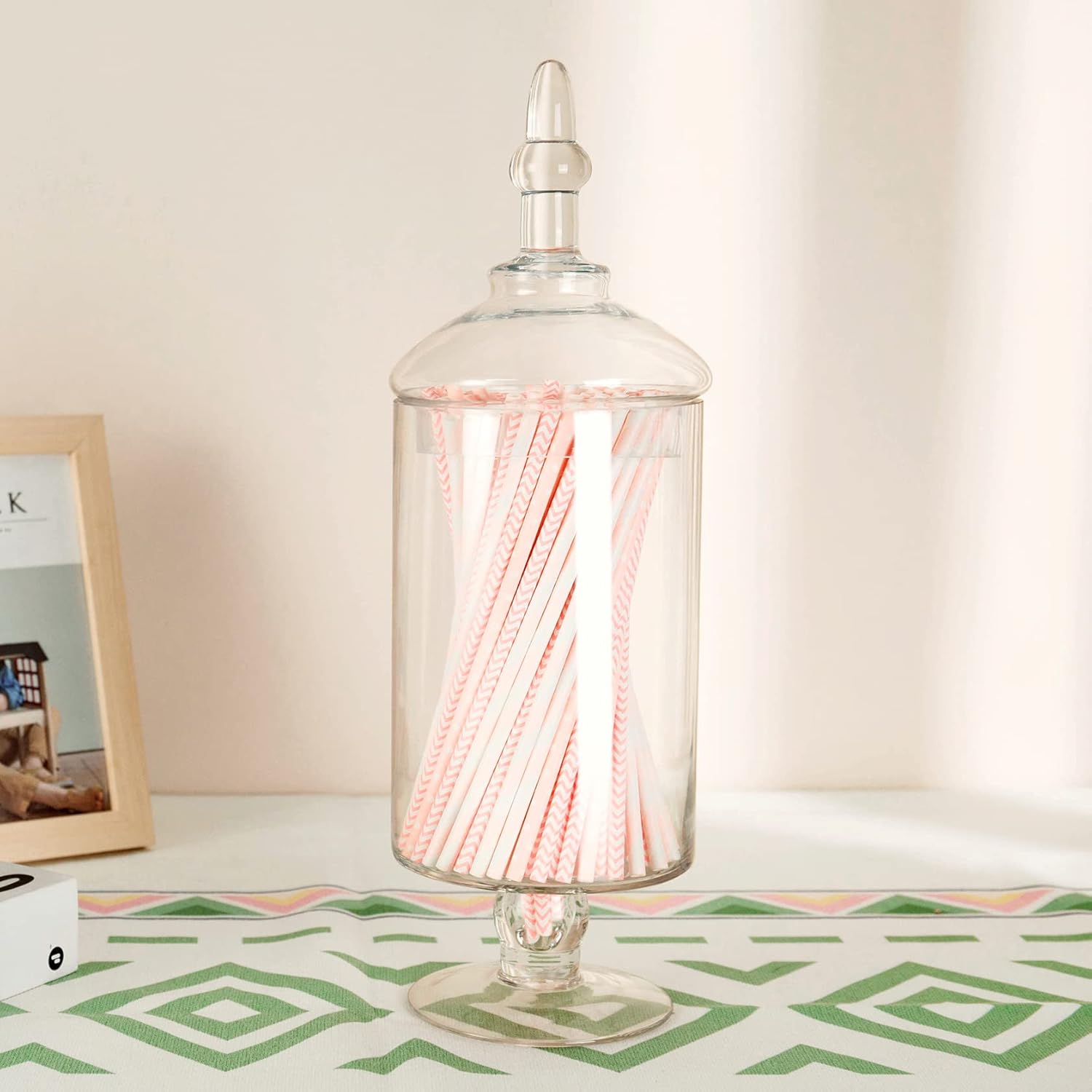 Glass Apothecary Jars, Clear Candy Bowl Dishes Holder Elegant Storage Buffet Display, Decorative Wedding Candy Organizer Canisters (Height: 15.5" Body: 5")