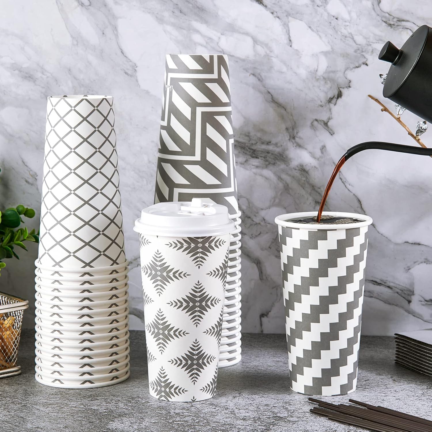 - Great Value Pack: You will receive 100 pack 20 oz disposable cups, including 100 cups in four grey designs, 100 white lids, 100 grey cup sleeves, and 100 straws