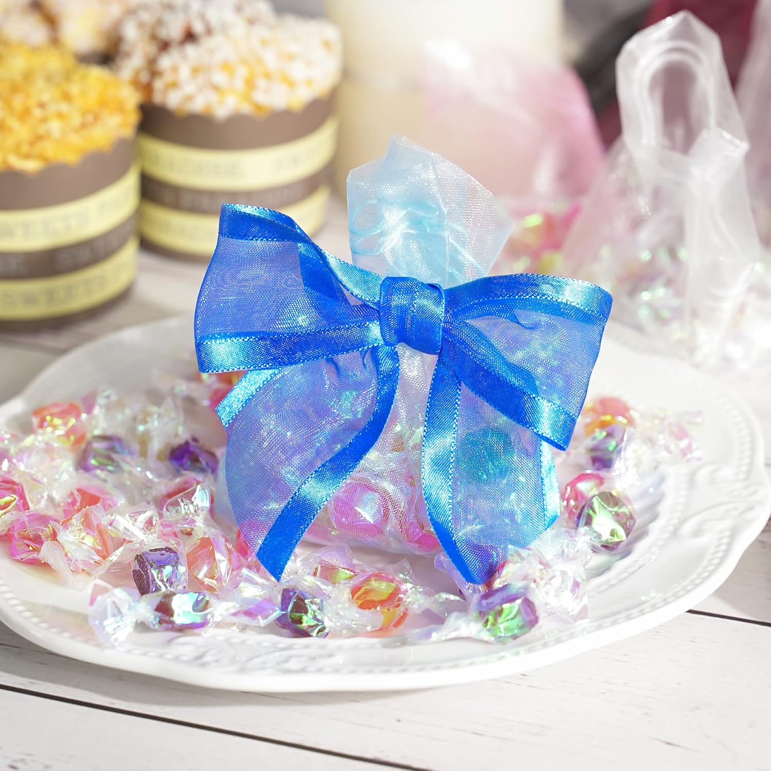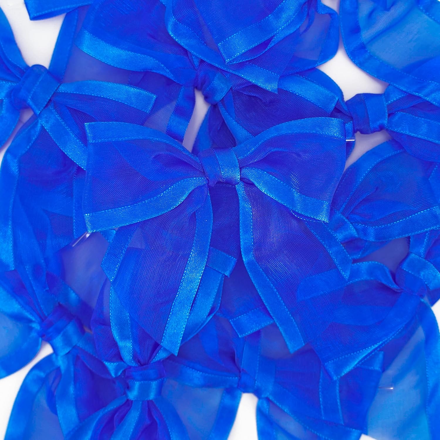 - PRETIED RIBBON BOWS- Decorative bows is made of 1-1/2'' royal blue organza satin edge ribbon with romantic transparency and glossy lustre, easily adding a elegant final touch to your party favor, cake pop bags, gift basket