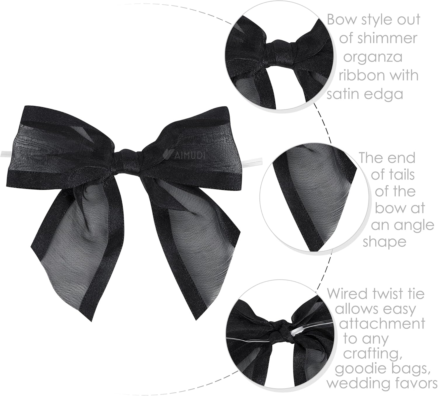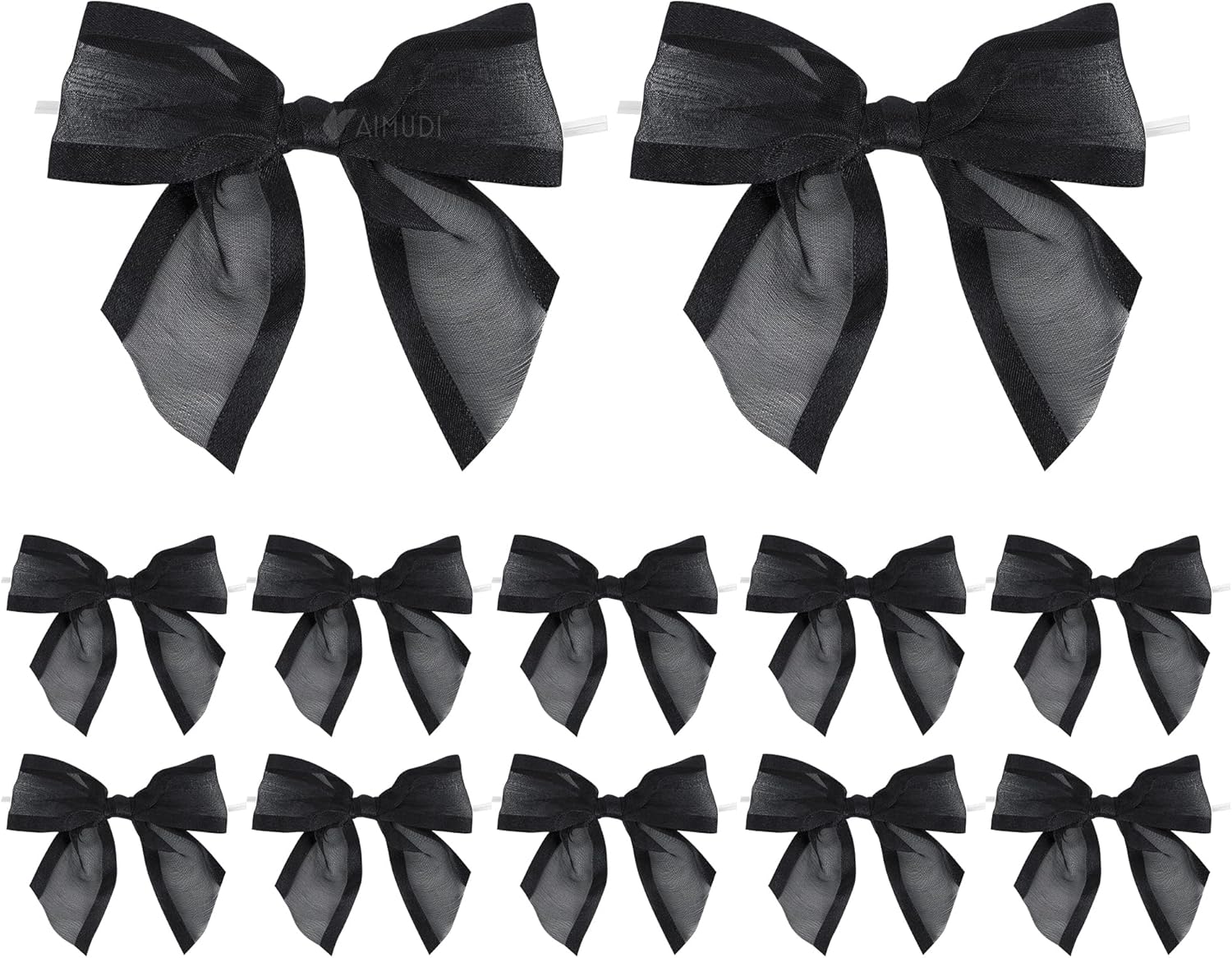 AIMUDI Black Bows for Crafts 4" Organza Bows Premade Twist Ties Bows for Gift Wrapping Treat Bags Baskets Cake Pop Baby Shower Birthday Wedding Decor - 12 Counts
