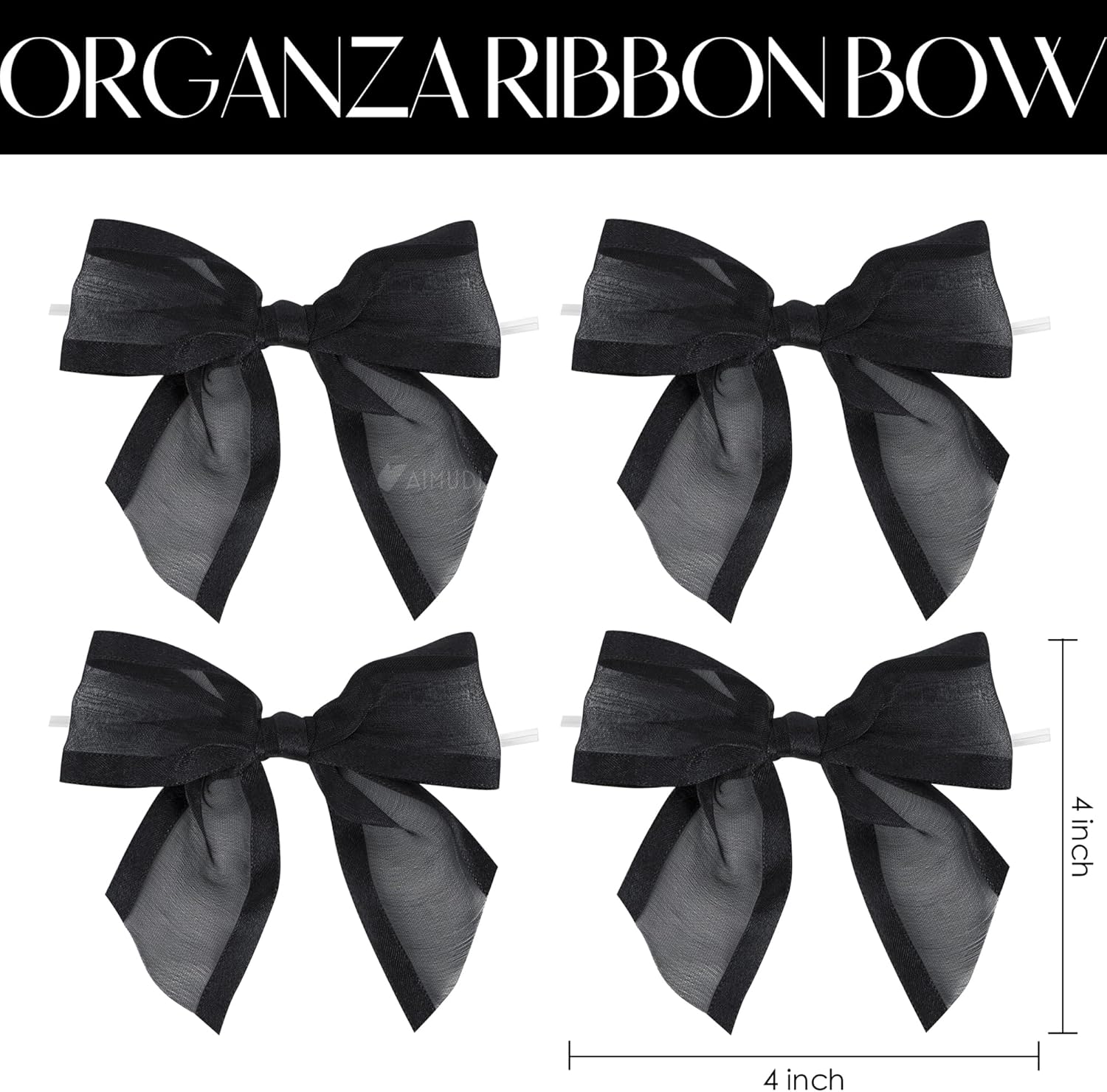 - PRETIED RIBBON BOWS- Decorative bows is made of 1-1/2'' black organza satin edge ribbon with romantic transparency and glossy lustre, easily adding a elegant final touch to your party favor, cake pop bags, gift basket
