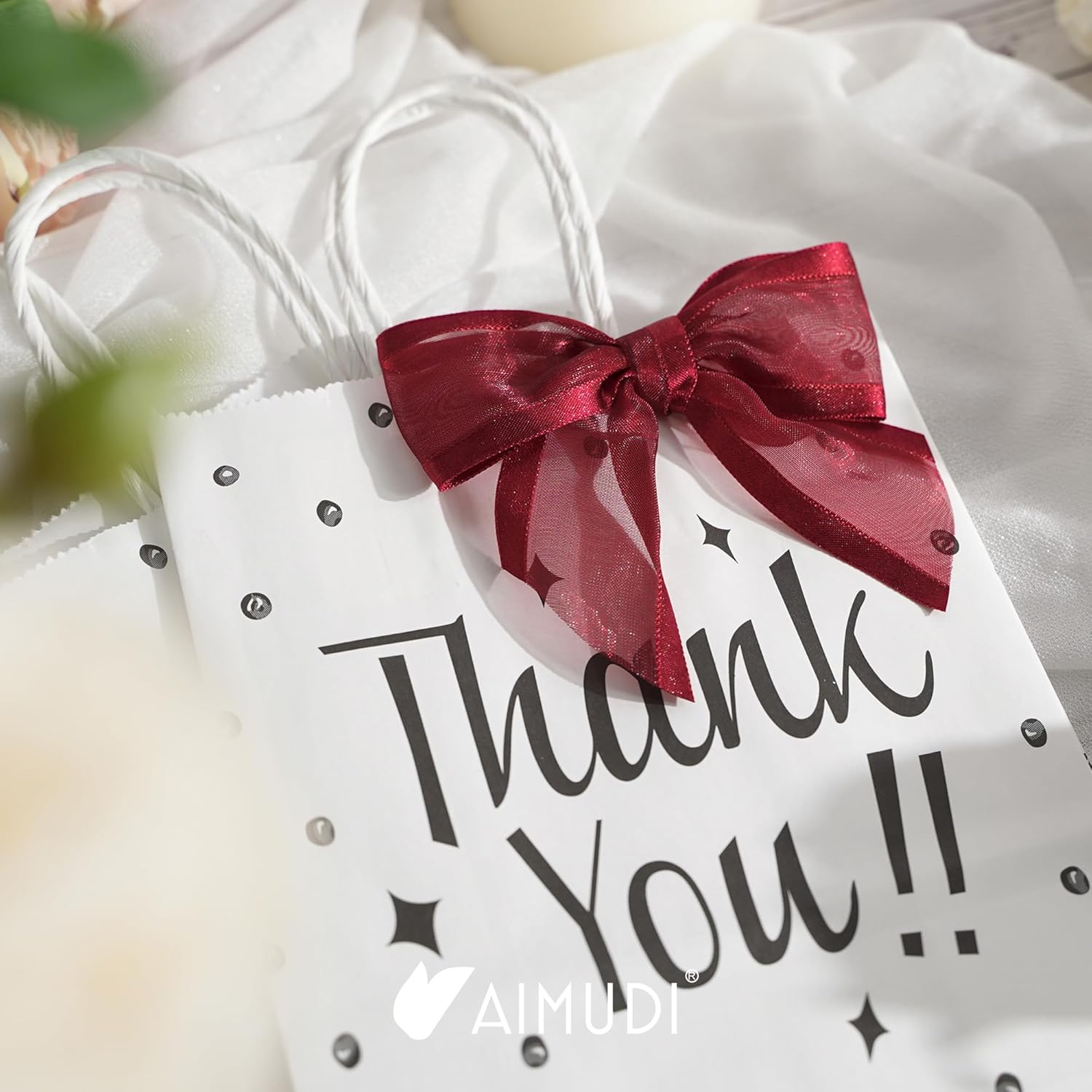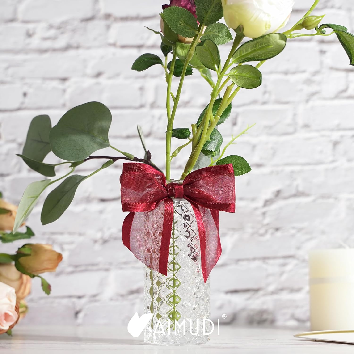 - PRETIED RIBBON BOWS- Decorative bows is made of 1-1/2'' burgundy organza satin edge ribbon with romantic transparency and glossy lustre, easily adding a elegant final touch to your party favor, cake pop bags, gift basket