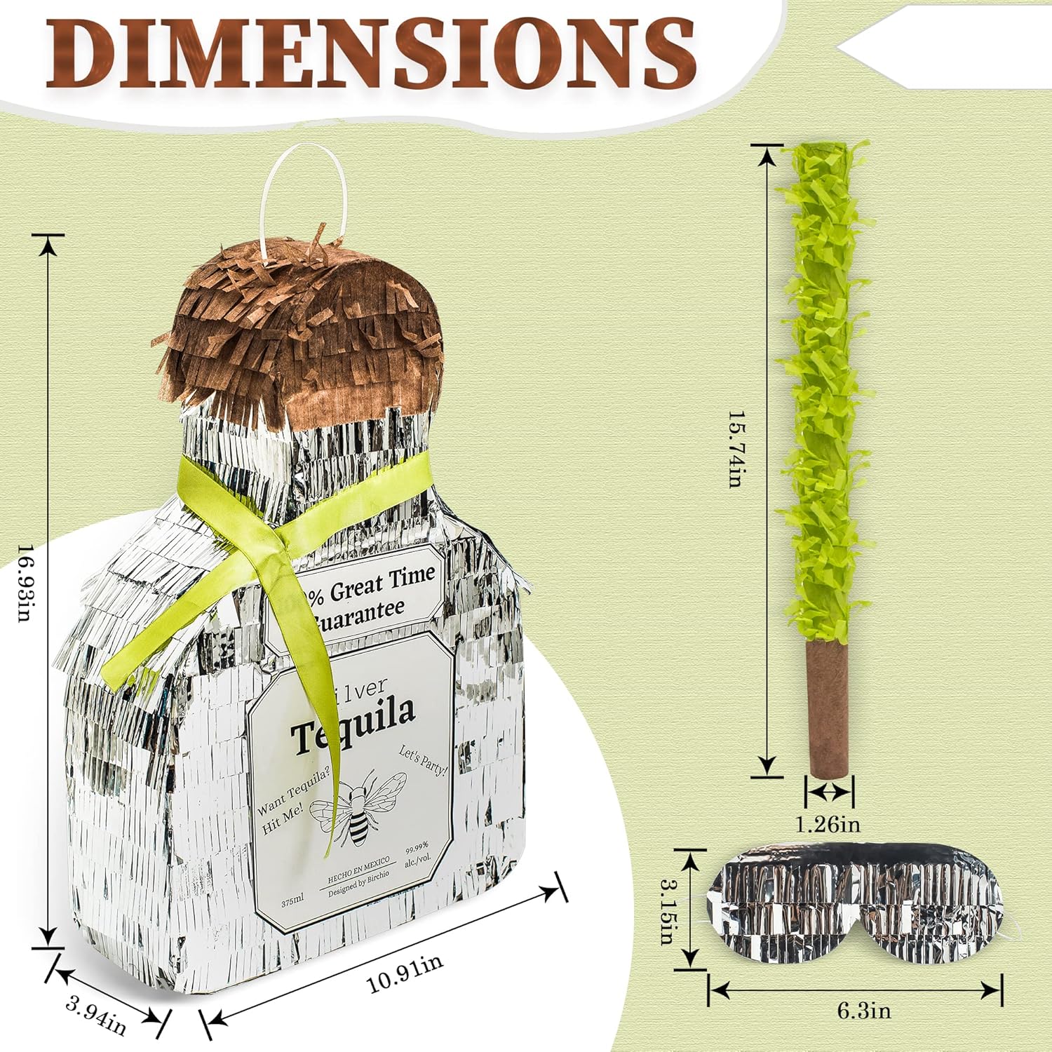 - ❤️【 PREMIUM QUALITY 】- The tequila pinata measures 17 x 10.5 x 4 inches. Made with high and resistant cardboard. Decorated with crepe paper on bond paper, high strength plastic loop to hang. Premium material ensures its durability and fancy looking. It comes with a blindfold and bat to make more fun.