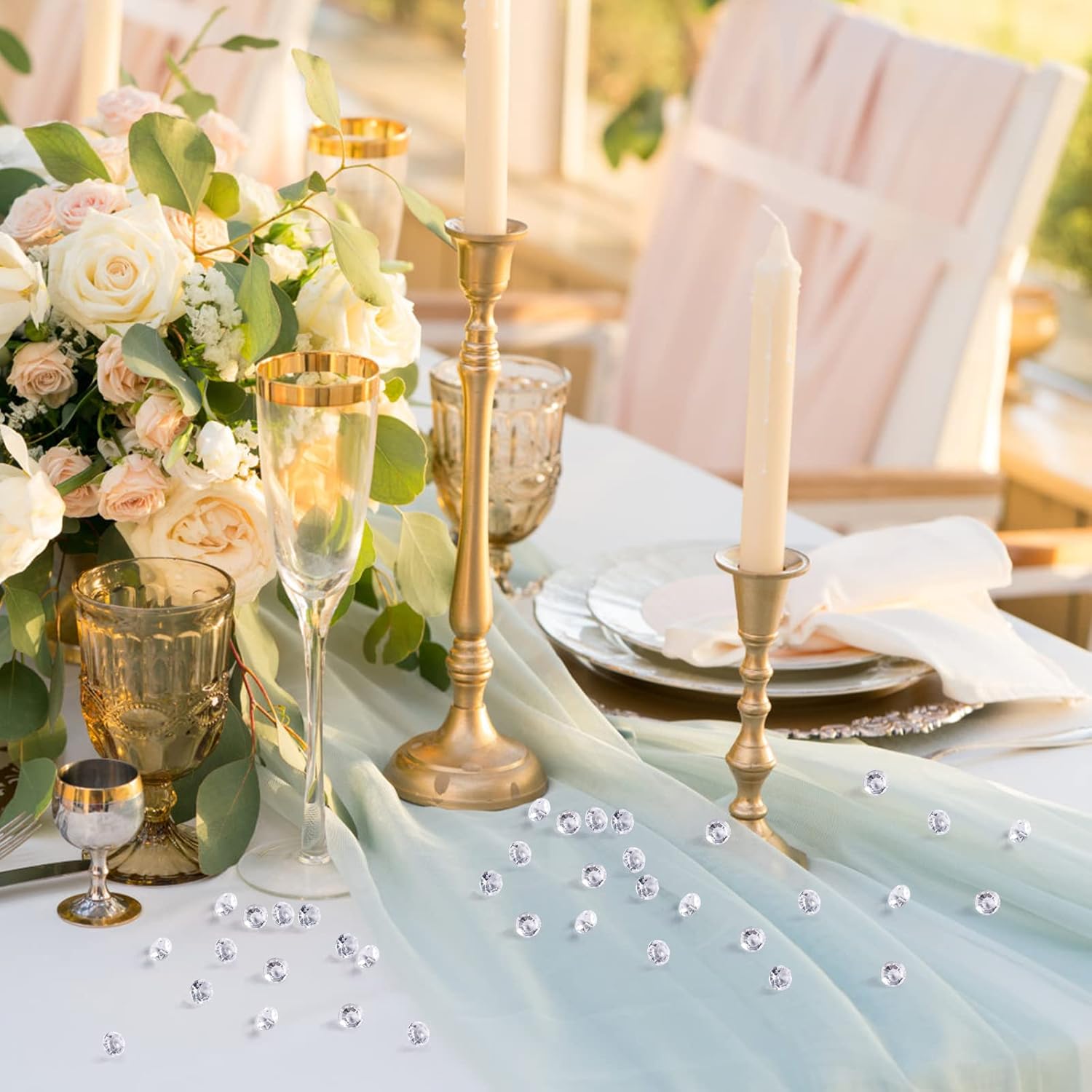 - Bright diamond: The fake diamonds sparkled in the sun, scattering them around the middle of the wedding table and adding the perfect finishing touch