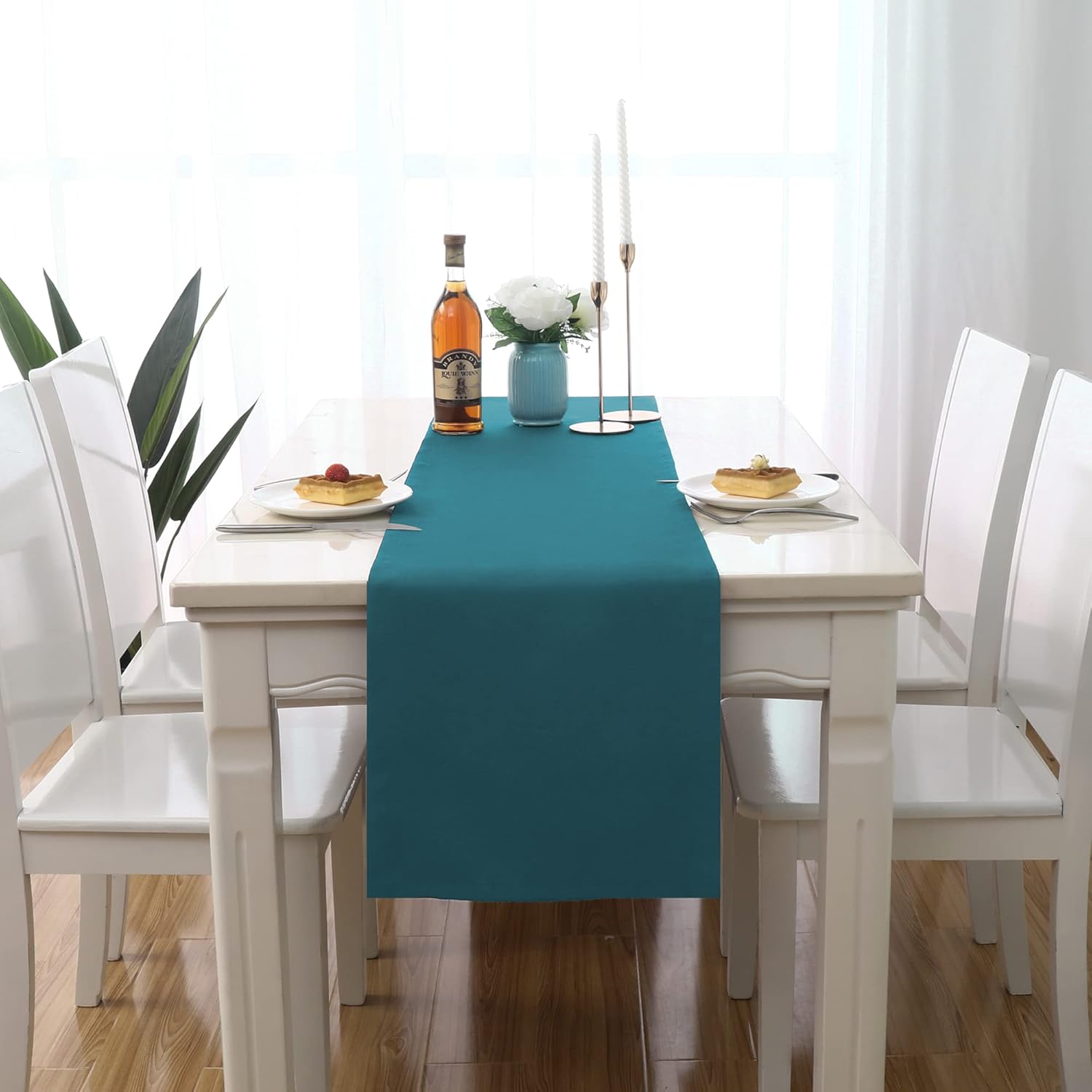 DUALIFE Teal Table Runner 14x72 inch Solid Color Thick Polyester Decorative Cloth Handcrafted for Wedding Party Birthday Graduations Hotel Restaurant Banquet Catering Services Event