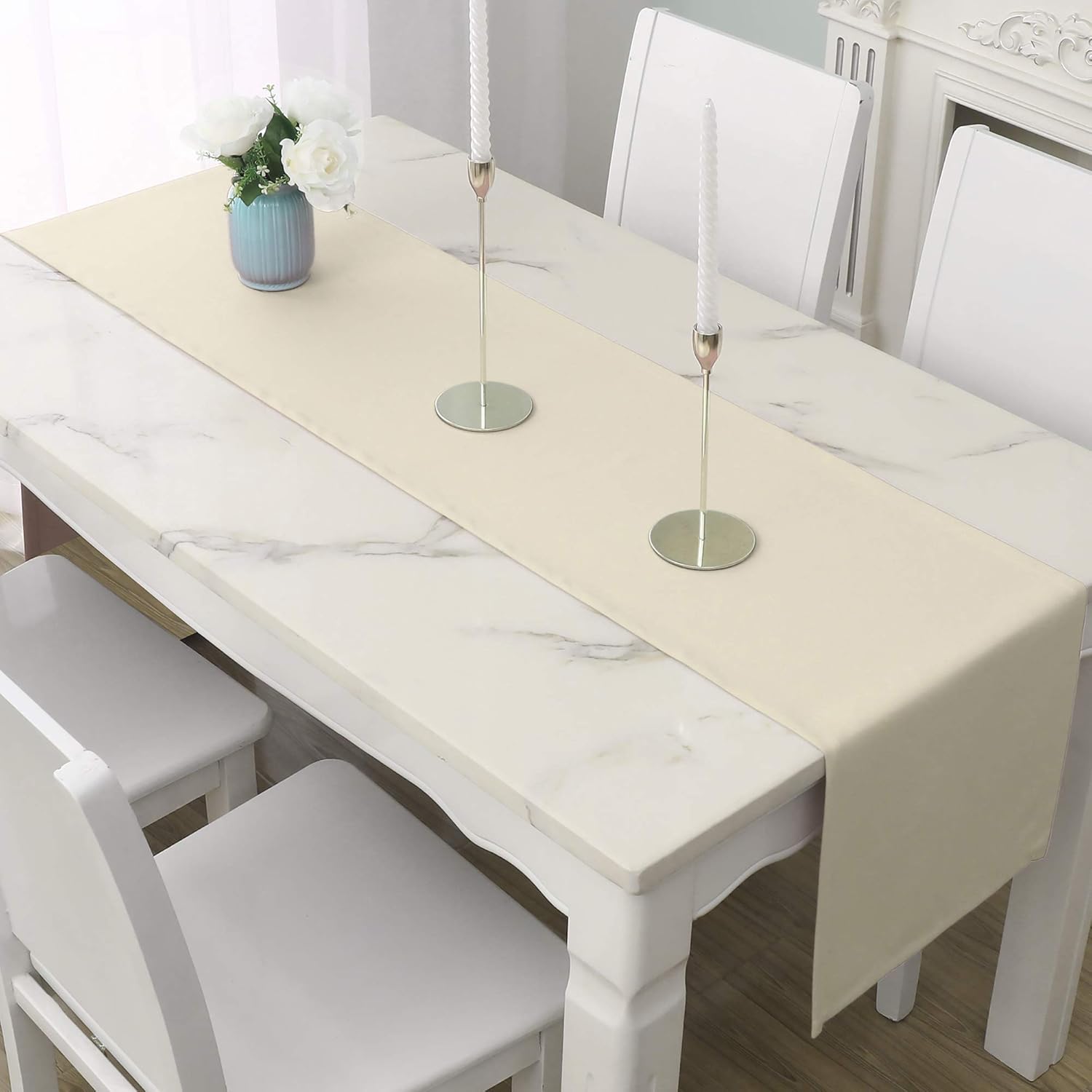 DUALIFE 2 Pack Table Runner 14 x 72 Inch Long Table Cloth Table Runners for Wedding Engagement Banquet Graduations Birthday Party Decorations Cream Beige