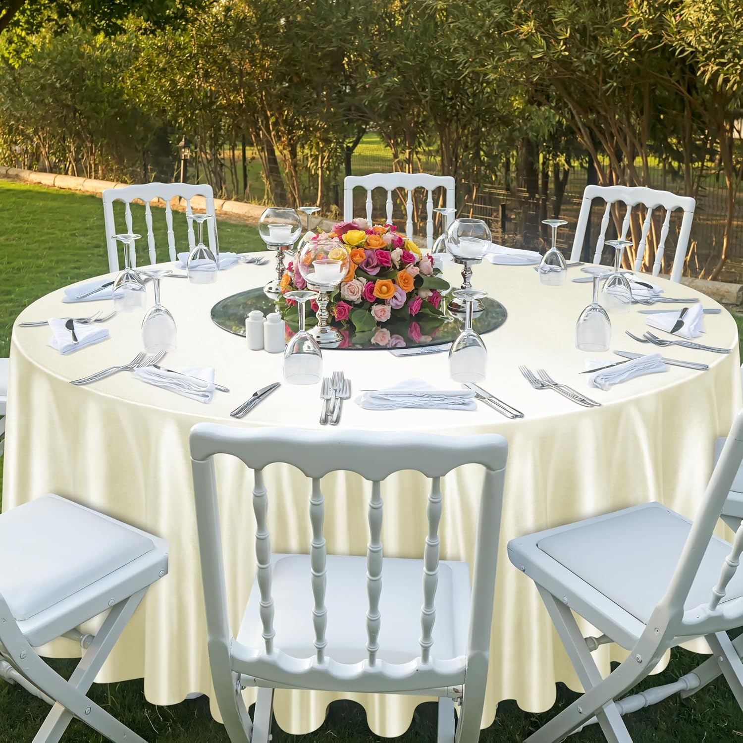 Ruisita 120 Inches Round Satin Tablecloths Ivory Overlay Round Satin Table Cover Bright Silk Smooth Fabric Tablecloth for Wedding Banquet Tables Decoration